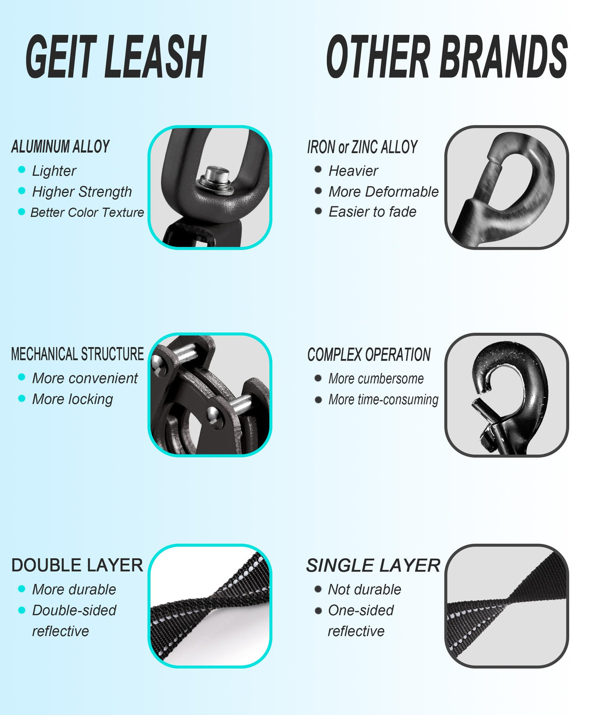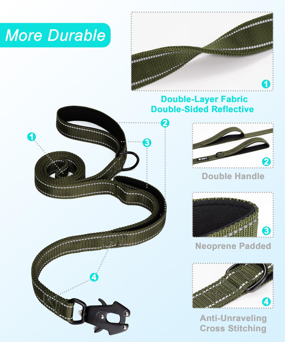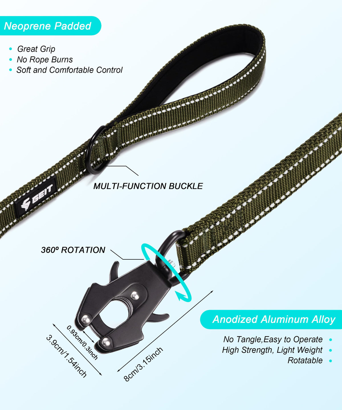 Geit 4/5/6Ft Heavy Duty Dog Leash, 2 Handles Reflective Rope Leashes, Walking Lead With Quick Release/Locking Tactical Frog Clip