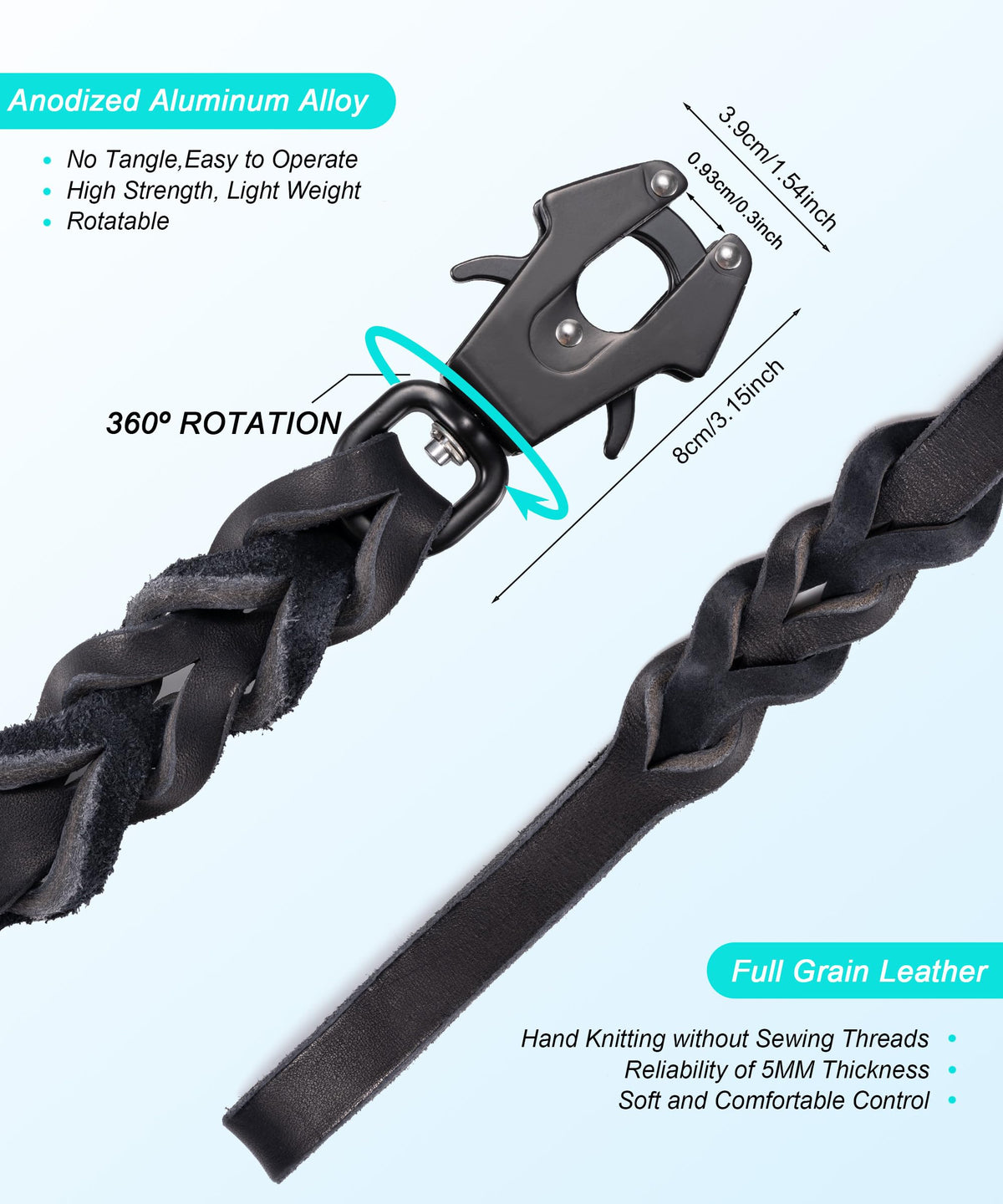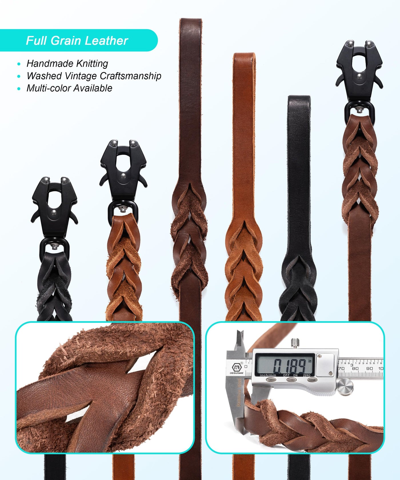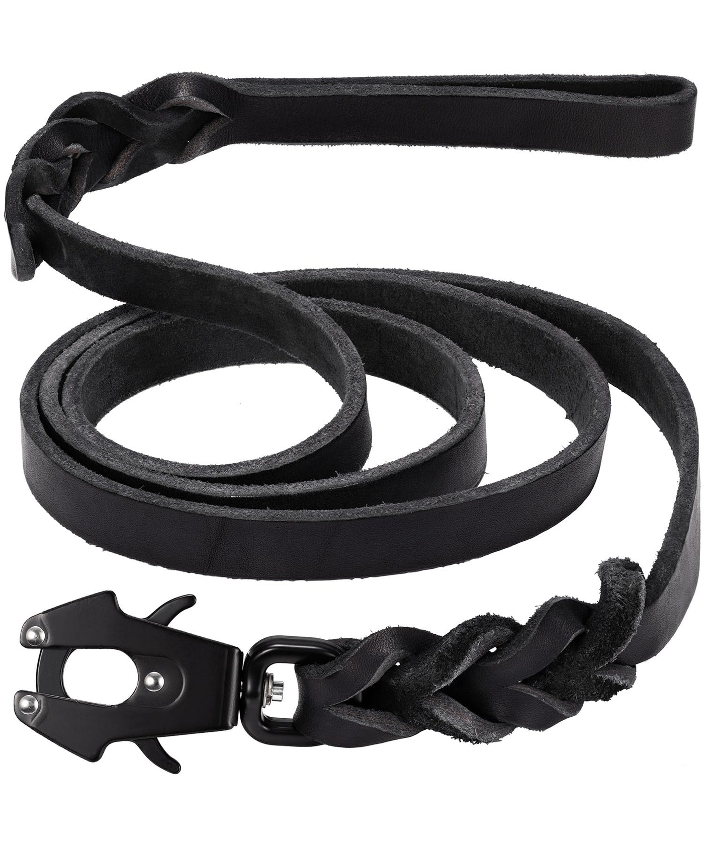 Geit 4/5/6Ft Leather Dog Leash, Heavy Duty Dog Training Leashes, Genuine Leather Braided Leash With Quick Release/Locking Tactic