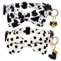 Gelwoo 2 Pack Cotton Cat Collar With Bow Tie And Bell For Male Female Cats,Soft Fancy Breakaway Kitty Kitten Collar With Green A