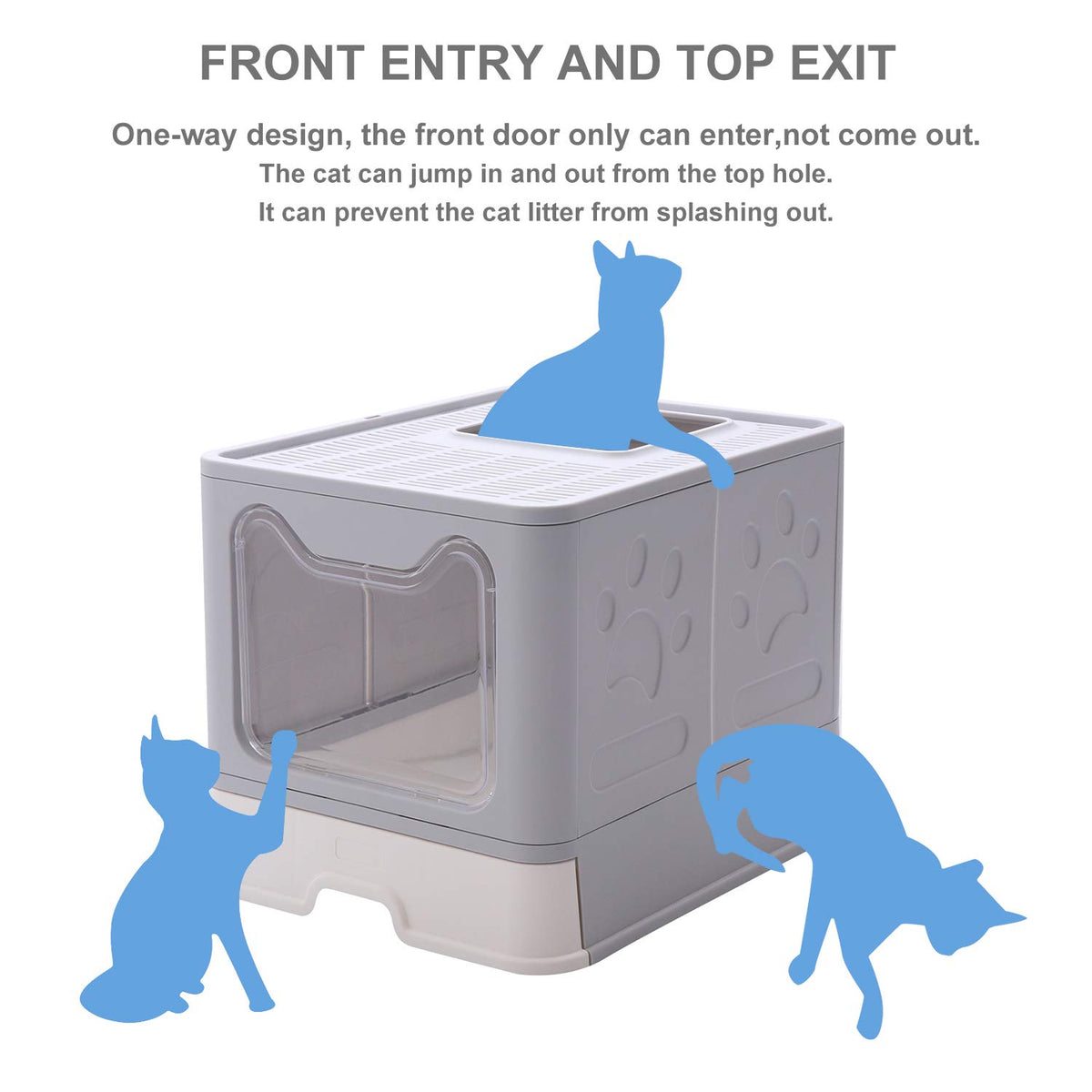 Genenic Large Foldable Cat Litter Box Pan With Lid, Cat Potty ,Top Entry Type Anti-Splashing Cat Supplies With Pet Plastic Scoop