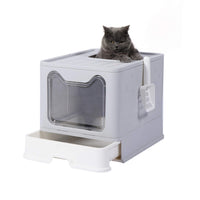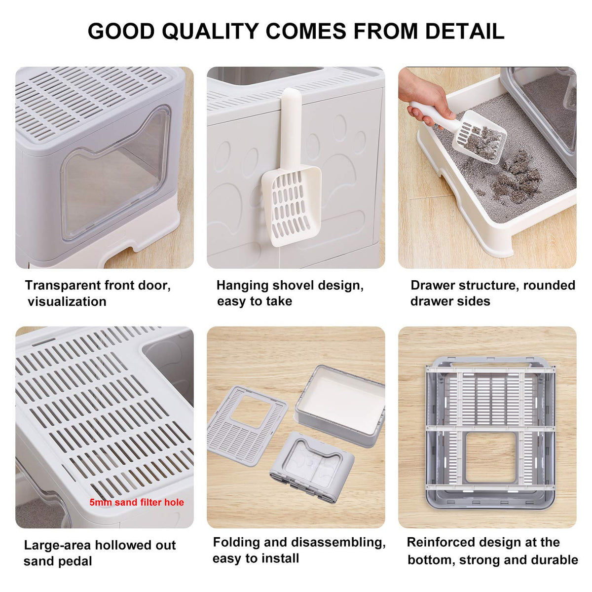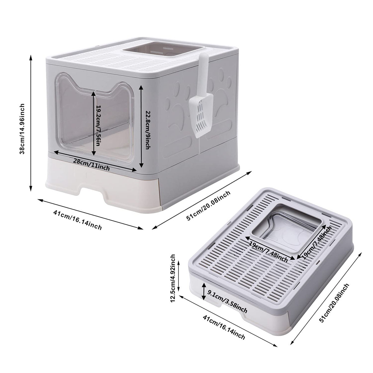 Material: Pp+Ps Color:Grey Folded Size:51*41*12.5Cm/20.08*16.14*4.92Inch Expanded Size:51*41*38Cm/20.08*16.14*14.96Inch Net Weight:2.76Kg Gross Weight:3.26Kg Package Include:1Pcs Cat Litter Box Large Private Space. Cats Like To Drill Holes And Go To The Toilet In A Confined Space, Which Will Make Them Feel Safer And More Comfortable. Drawer Structure:Just Need Pull Out The Drawer, You Can Easily Shovel And Change Cat Litter (Product With Shovel). Installation Steps 1Open The Top Cover And Take Out The Main Body Inside. 2.Expand The Fence(The Fence Is Integrated Design,No Need To Install By Yourself) 3.Insert The Buckle Of The Fence Down Into The Card Slot Of The Base. 4.Install The Transparent Baffle From The Inside. 5.Observe The Top Cover And Place The Hole On The Back Side.