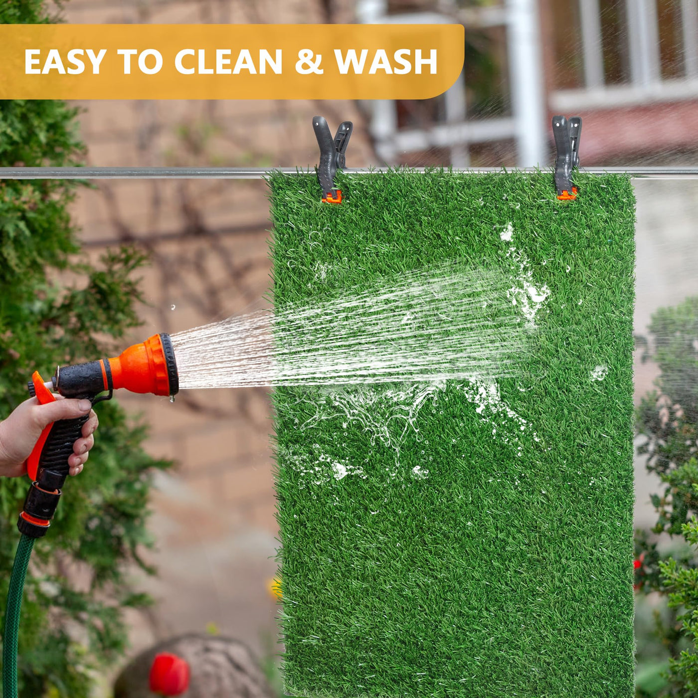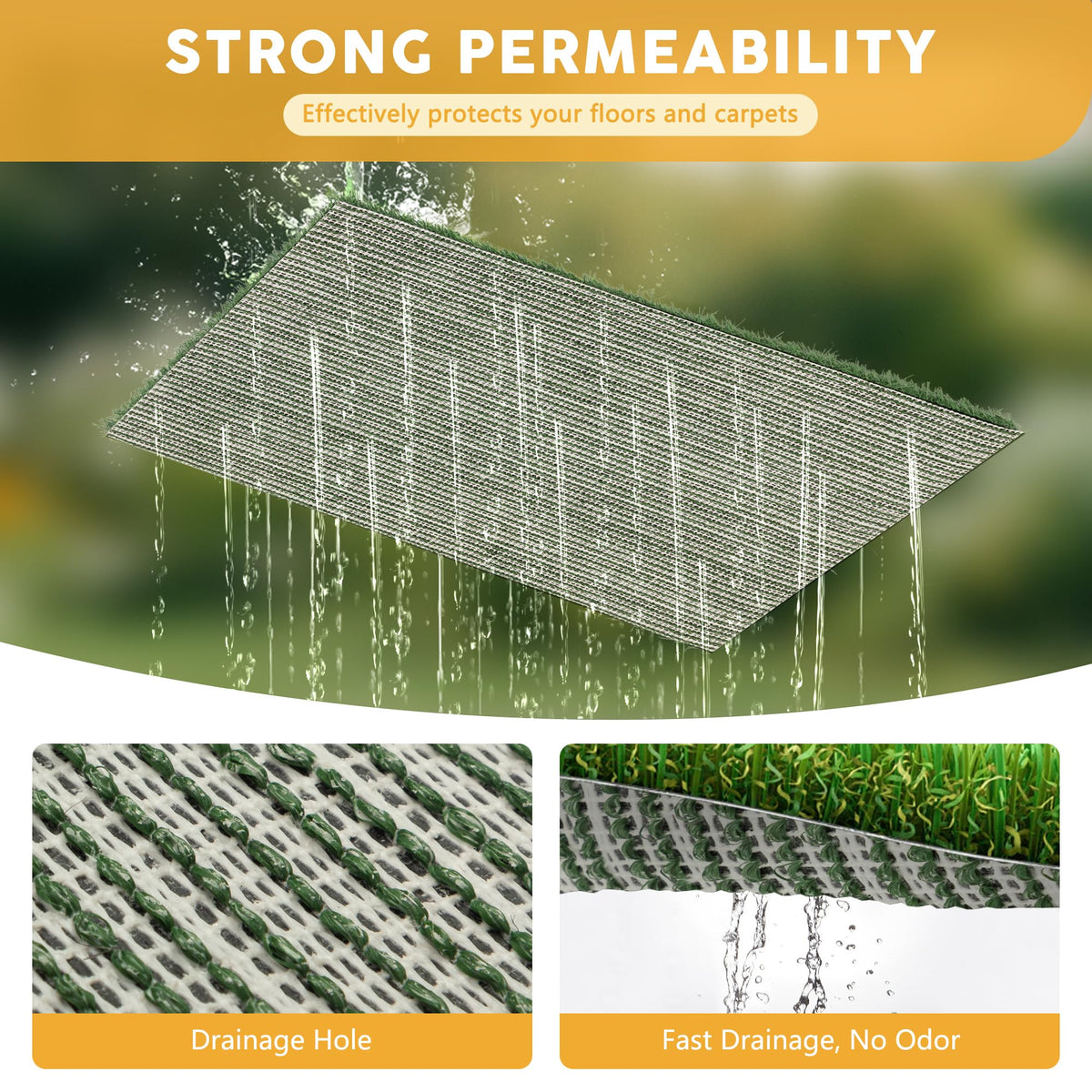 Our Dog Grass Pad serves as a convenient and hygienic solution for pet owners who reside in urban areas or have limited access to outdoor spaces and promotes consistent potty training by offering a designated area for dogs to eliminate, ultimately fostering good habits and minimizing accidents indoors. Features: Designed to assist in the indoor potty training of small to large breeds Natural and comfortable grass surface for dogs to use for bathroom needs Durable and long-lasting material can withstand repeated use and washing Drainage system efficiently removes liquid waste for an odor-free surface Lightweight design makes the dog grass pad easy to move around the house Compact size allows for indoor placement in apartments or homes Specifications: Color: Black + Green Material: PP + PS + PE Product Dimensions: 30''L x 20''W Pee Pad Dimensions: 27.5''L x 17.75''W Net Weight: 4.4 lbs Package Includes: 1 x Dog Grass Pad with Tray 1 x User Manual
