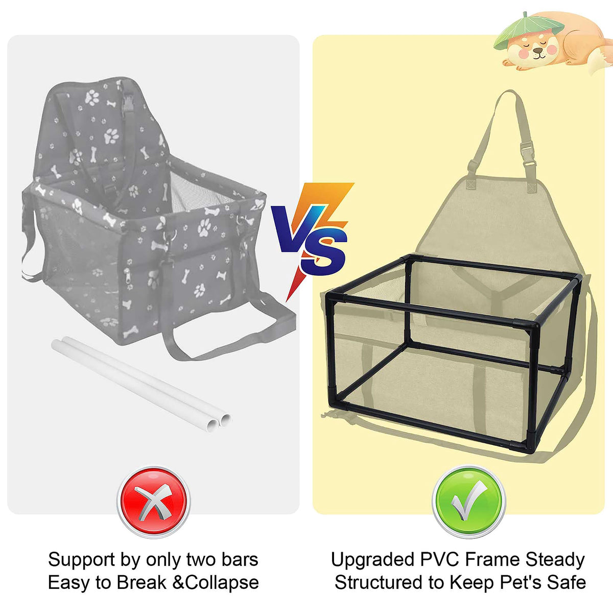Compared to other soft and collapsed puppy car seat, our upgraded pet car seat uses a sturdy PVC frame, safe and secure straps, so your pet can say goodbye to the rocking car journey and have a stable and comfortable pleasant outing experience!