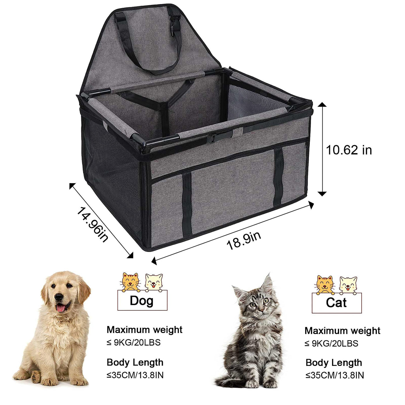 Genorth Dog Car Seats For Small And Medium Dogs,Portable Puppy/Pet Car Booster Seat With Clip-On Leash And Mesh Window For Pet Up To 20 Lbs
