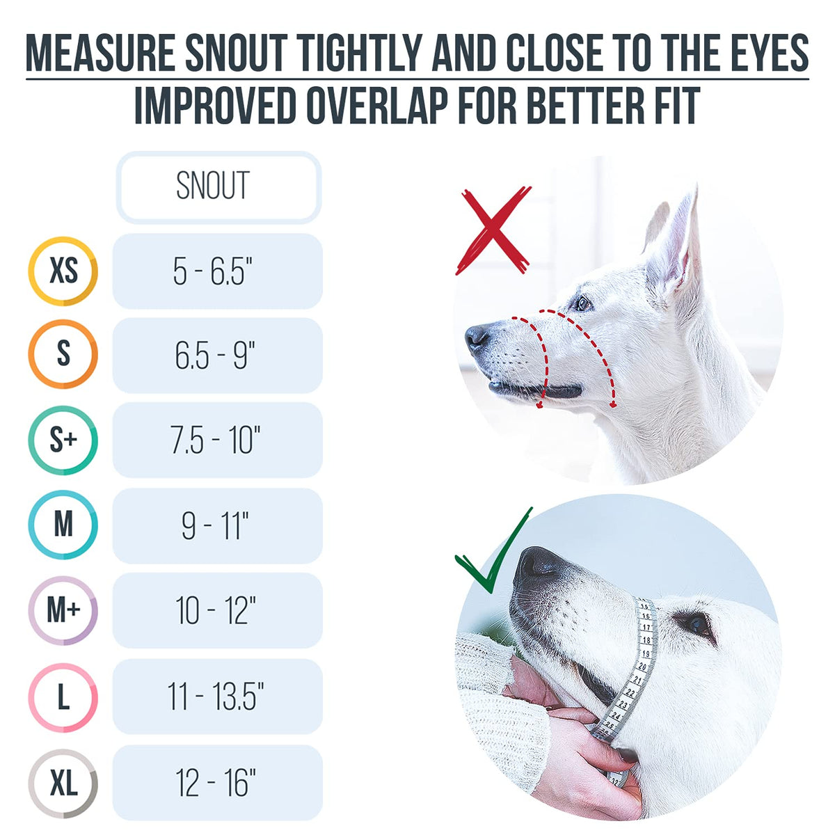 Updated - Easy to Measure for Accurate Size - Simply follow the guide on Picture 3 to learn how to measure your new muzzle to get the right size for your dog. The adjustable strap makes it easy to get the best fit for your dog