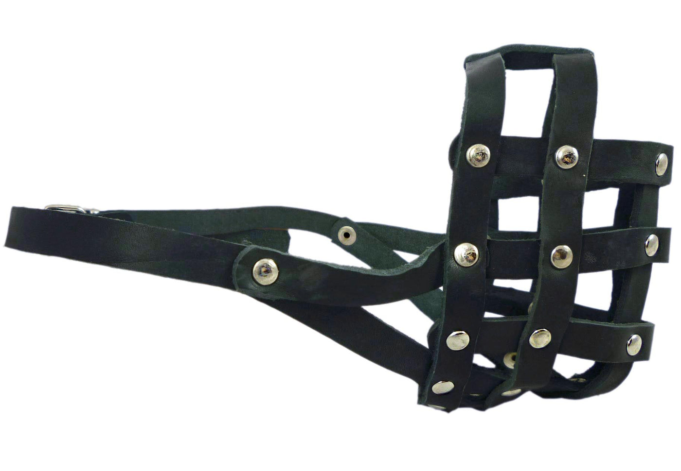Genuine Leather Dog Basket Dog Muzzle #110 Black - Bulldog, Boxer (Circumference 13.7', Snout Length 2.75')
