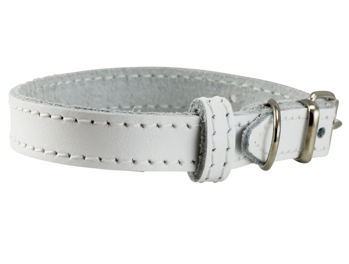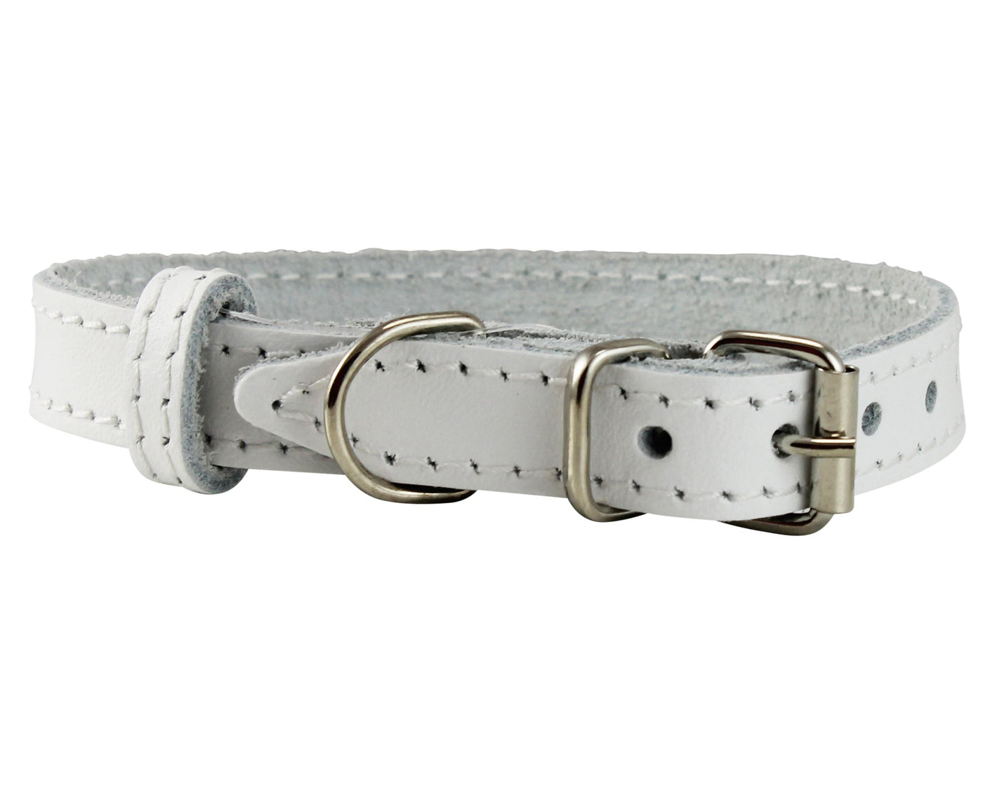 Genuine Leather Dog Collar For Smalles Dogs And Puppies 3 Sizes White (Neck: 8'-9.75'; 3/8' Wide)