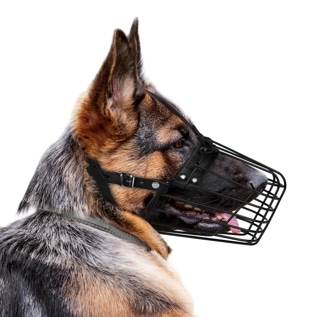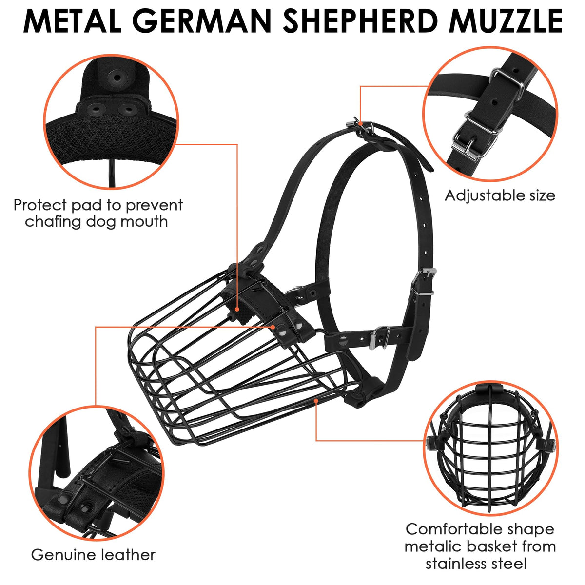 German Shepherd Dog Muzzle Metal Basket for Medium Large Dogs Adjustable Durable Leather Straps Secure Wire Mask for Biting Chew