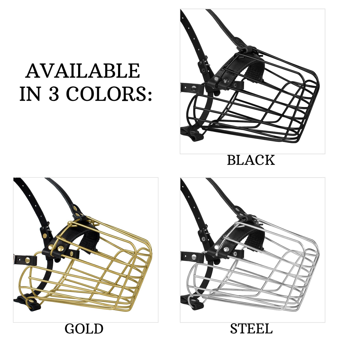 German Shepherd Metal Muzzle - a reliable and durable solution for training and managing your canine companion. Crafted with a sturdy wire basket design, this muzzle provides excellent ventilation while allowing your german shepherd to breathe comfortably. The inclusion of durable leather straps ensures a secure and adjustable fit, allowing you to customize it for your dog's comfort. Available in two sizes and three colors, our metal muzzle accommodates various German Shepherd breeds and personal preferences. It is available in different colors to suit the style preferences of the owner - Black, Gold and Silver. It's an effective tool for training purposes, preventing biting, chewing, and excessive barking. The robust construction ensures durability, making it suitable for both training sessions and everyday use. Whether you're a professional dog handler or a pet owner looking for a reliable solution, our german shepherd muzzle offers a humane way to manage your dog's behavior. Prioritize safety and control without compromising your dog's well-being with this adjustable, ventilated, and durable wire basket muzzle.