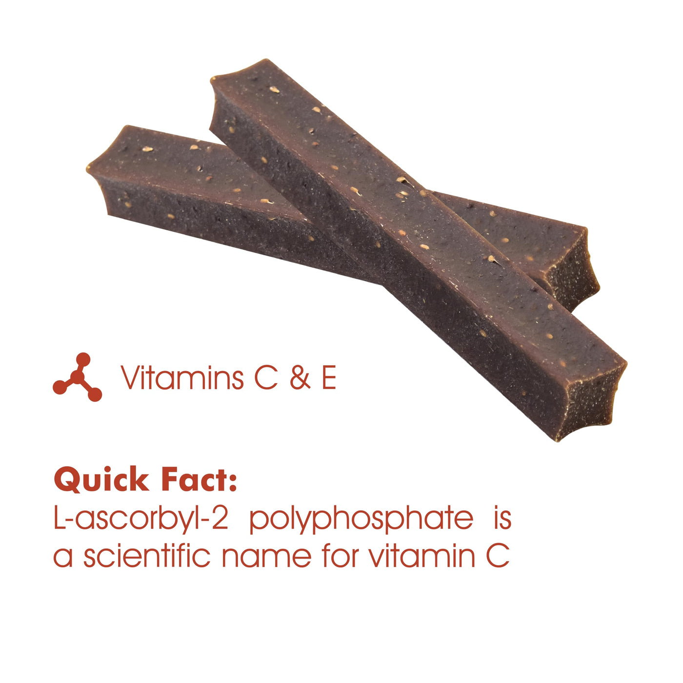 Get Naked Super Antioxidant dental chew sticks are grain free treats packed with a special blend of antioxidant rich super fruits and veggies. Antioxidants are crucial for neutralizing the cell-damaging free radicals that your dog is exposed to on a daily basis. Our Super Antioxidant chew sticks are fortified with vitamins and minerals to further promote good health and overall wellness for your special four-legged family member. Your dog deserves the very best and our tasty chicken flavored chew sticks are sure to satisfy their cravings while delivering an abundance of healthy ingredients.