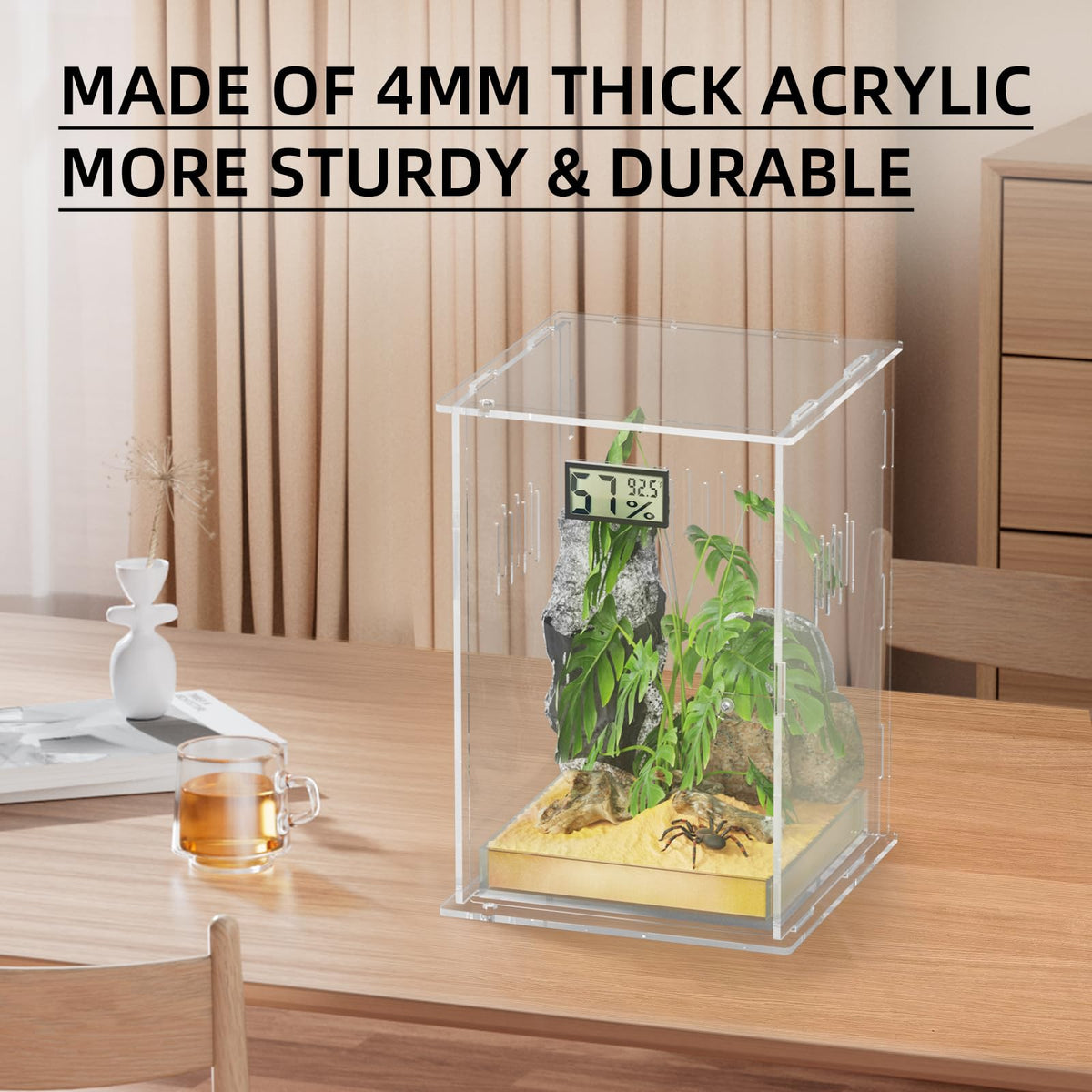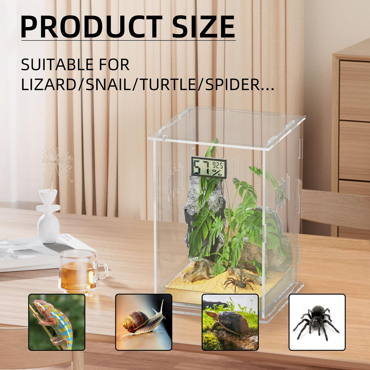 Ghims Reptile Terrariums With Temperature Hygrometer, 7.1X7.1X11.8 Acrylic Breeding Box Terrarium Cage Tank For Small Rept