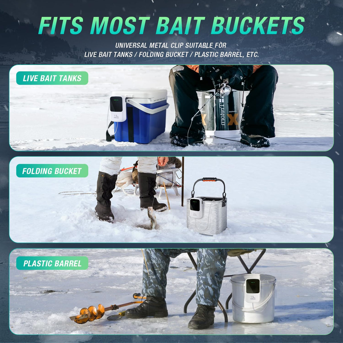 Ghosthorn Silent Dual Operating Mode Rechargeable Aerator for Fish, Large Capacity Aquarium Air Pump with Universal Clip for Mos