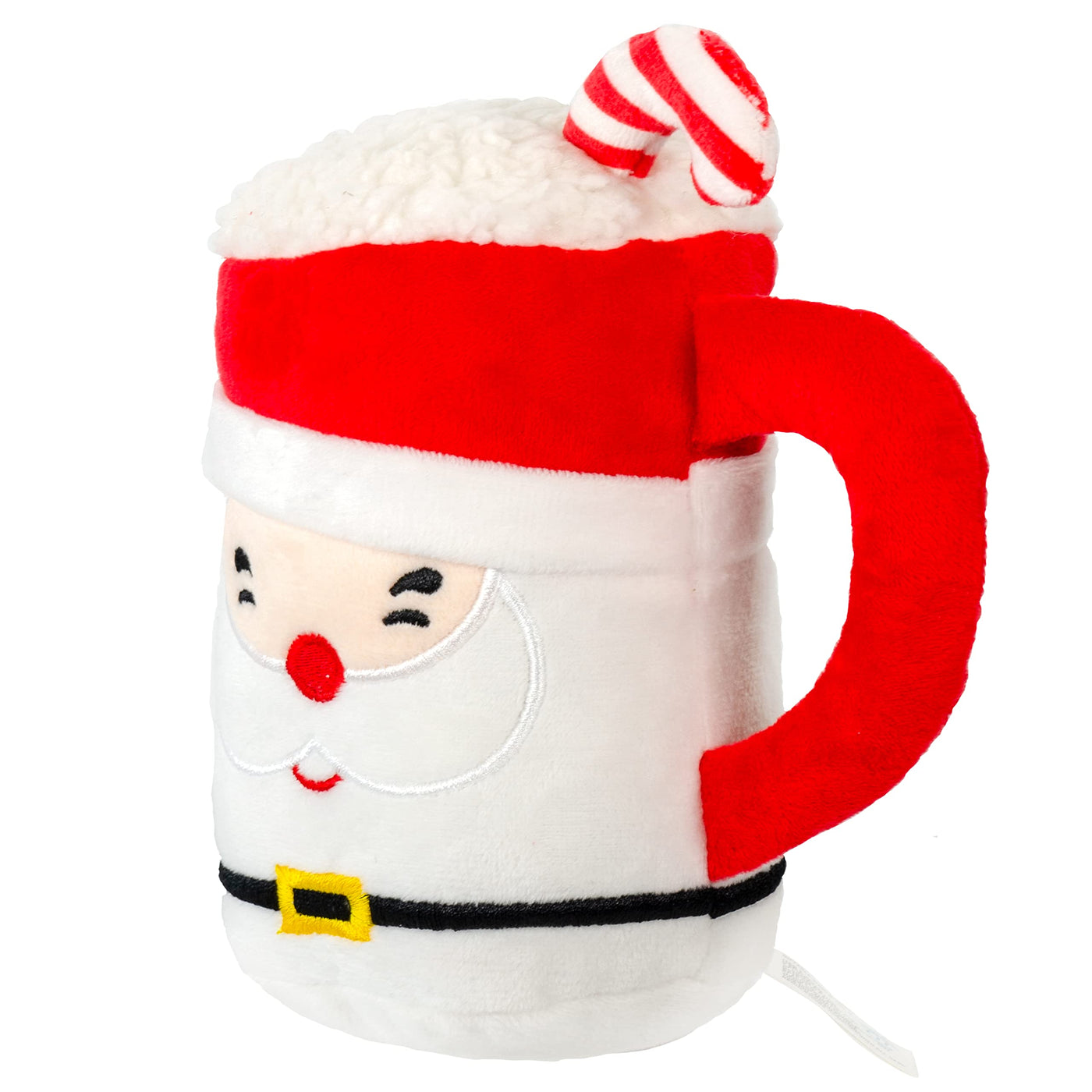 Giftable World Holiday Plush Pet Toy Fun For Christmas Designs With Squeaker Dog Chew Toy (6.5'' Santa & Reindeer Cups 2 Pcs)
