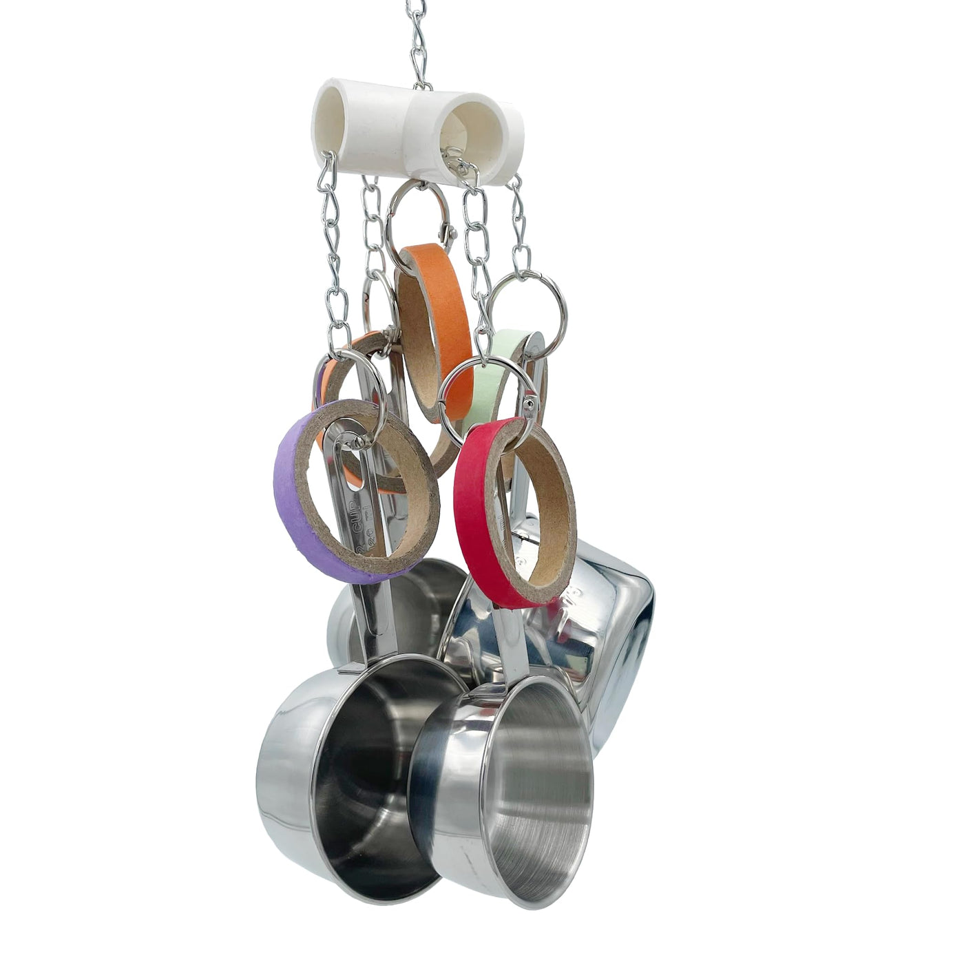 Gilygi Durable Bird Parrots Pots And Bagel Toys, Pullable Stainless Steel Cup And Cardboard Ring Toys For Amazons Mini Macaws Af
