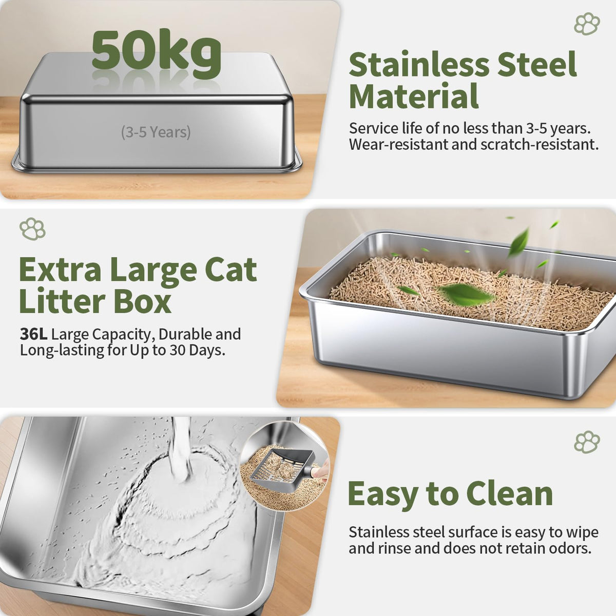 Gimars Stainless Steel Cat Litter Box Is Durable, Easy To Clean, Features An Anti-Slip Design For Stability, And Provides A Comfortable And Hygienic Toileting Experience For Pets.
