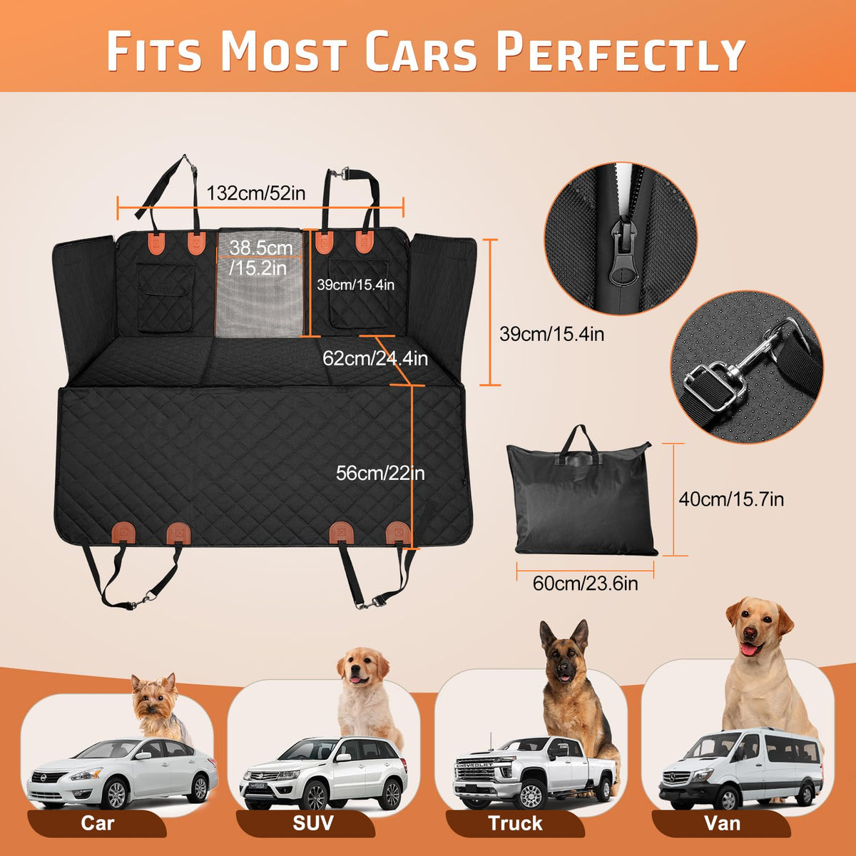 Gimars Holds 400Lbs Hard Bottom Back Seat Extender For Dogs, 62X52' Waterproof Dog Car Seat Cover For Back Seat, Back Seat Pet Cover Dog Hammock For Car Suv Truck With Nonslip Bottom Mesh Window