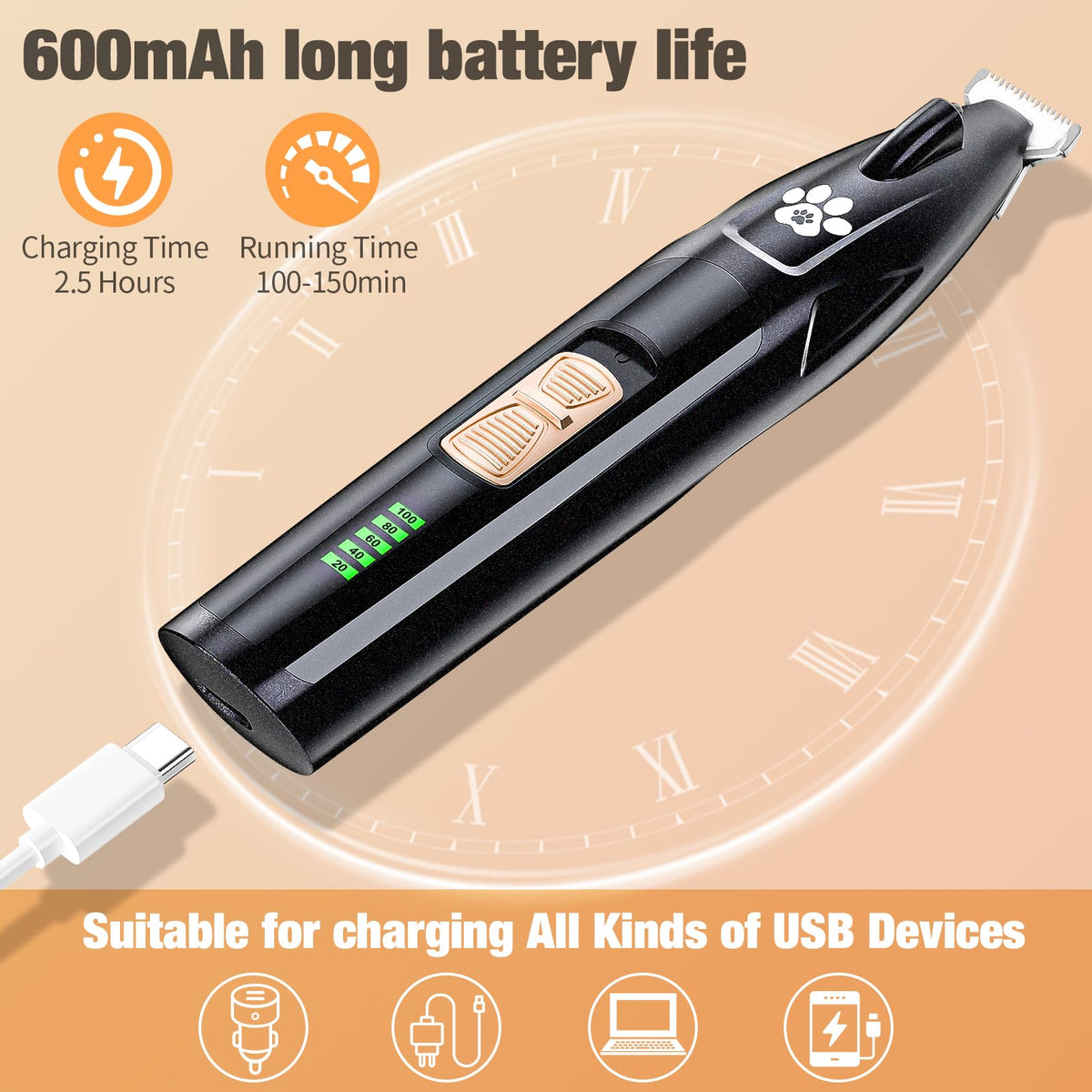 This Pet Paw Trimmer Is A Game-Changer For Grooming Your Furry Friends! Featuring An Led Battery Display, It Ensures You Never Run Out Of Power Mid-Grooming, Offering Over 100 Minutes Of Runtime On A Single Charge-Perfect For Dogs, Cats, And Other Pets. The Upgraded 19Cm Blade, Made From Stainless Steel And Ceramic, Delivers A Precise, Smooth Trim Every Time. Its Rust-Proof, Waterproof, And Stays Sharp For Long-Lasting Performance. With 35Db Low Noise Operation, This Trimmer Keeps Pets Calm And Relaxed, Thanks To Advanced Noise Reduction Technology. Its So Quiet, Your Pet Wont Even Notice! The Built-In Led Light Allows For Precise Grooming In Hard-To-See Areas, Making It Ideal For Paws, Eyes, Ears, Face, And More. Its A Versatile, All-In-One Tool That Saves Time And Effort. Charging Is A Breeze With The Included Universal Type-C Cable, Compatible With Computers, Power Banks, And Car Chargers. Even If Lost, Its Easy To Replace, Ensuring Hassle-Free Grooming Anytime, Anywhere. Combining Cutting-Edge Technology, Durability, And User-Friendly Features, This Trimmer Makes Grooming A Stress-Free Experience For Both You And Your Pet!