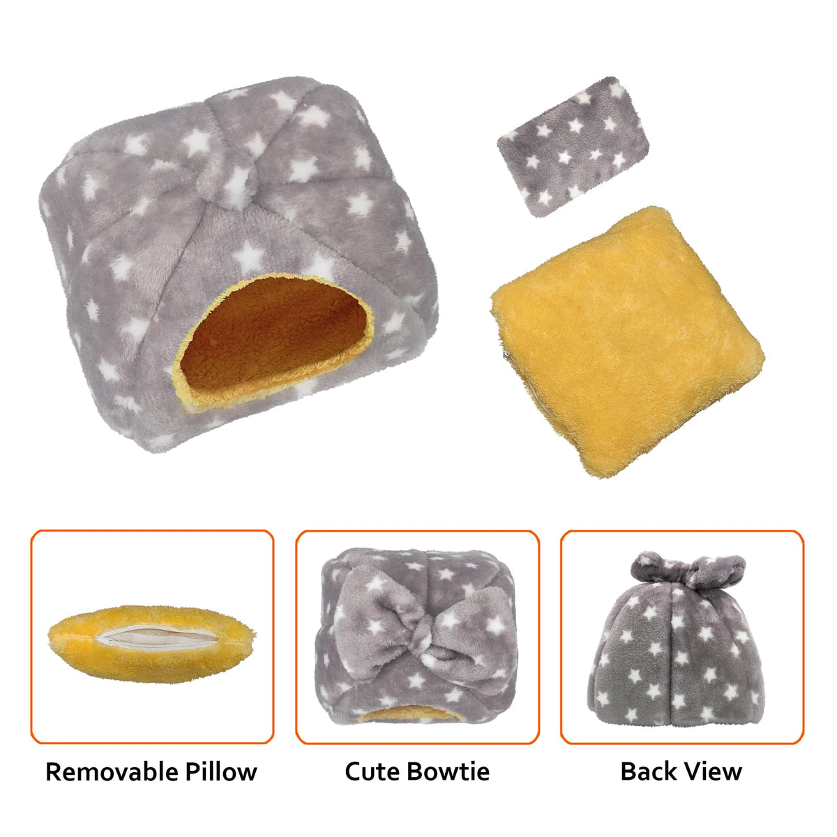 Ginidear Guinea Pig Bed, Guinea Pig Hideout House Accessories Warm Bed For Small Animals Hamsters Chinchillas Dwarf Bunnies Hedgehogs. M, Light Grey Stars.