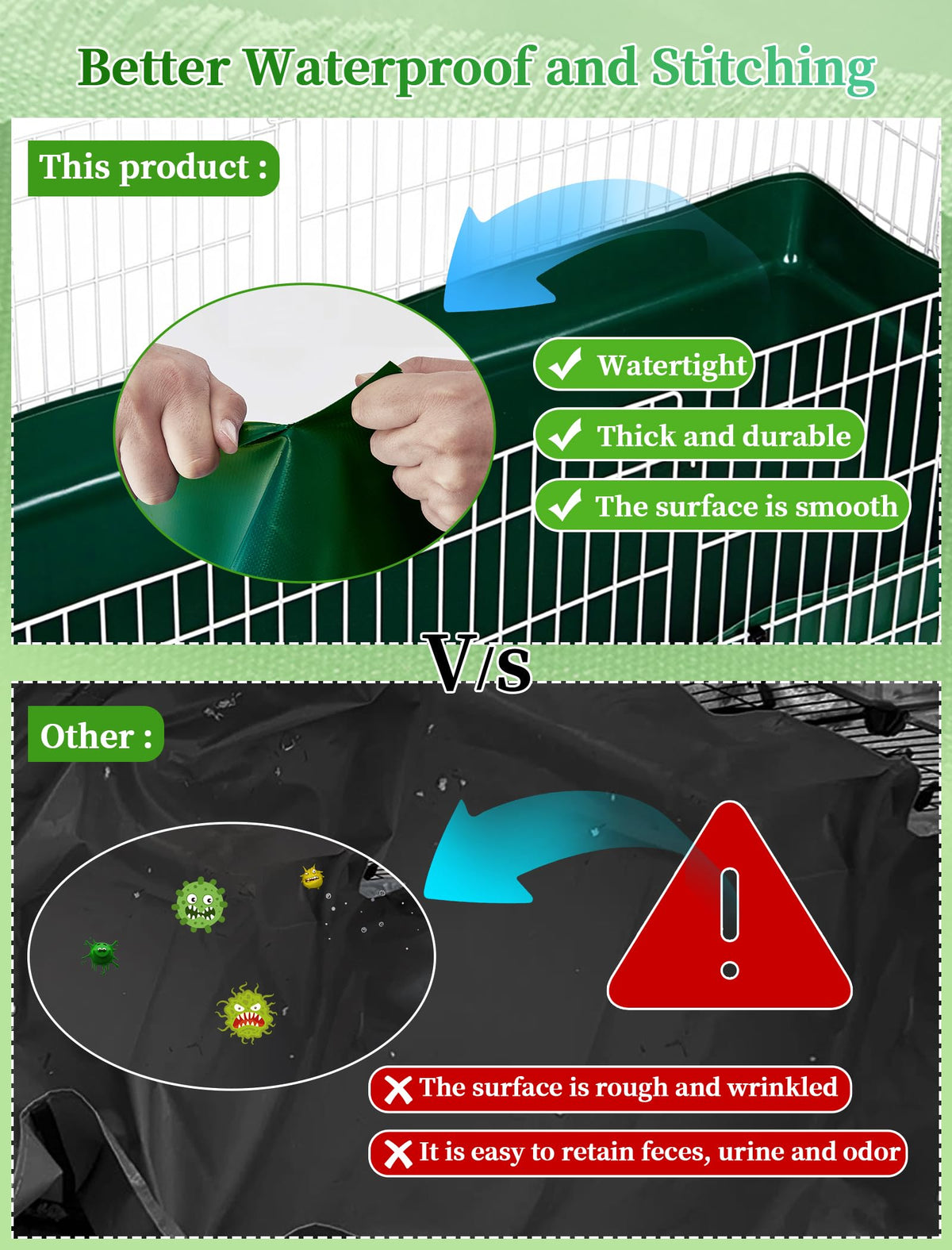 Healthy Guinea Pig Bottom Is Trending Now, Waterproof Cage Liners & Hay Feeders Are The Way To Go With Small Animals. These Bedding Are Well Made And Study: They Can Help You Get Away From Frequent Purchases And Replacements Over The Years. It'S An Easier Way To Keep The Cage Clean: Less Mess And Less Cleaning Work Than Wood/Paper Bedding Or Fleece Liners. Fast-Drying & Moisture-Free Surface: Which Is Critical To Keep Your Guinea Pigs Feet Dry. Available Sizes: 28X13-For C&C 2X1 Area. 28''X42''-For C&C 2X3 Area. 28X56-For C&C 2X4 Area. 24X13-For 1/4 Midwest Cage Area. 24X32-For 3/4 Midwest Cage Area. 24X47-For Midwest Cage. Our Liners Are Specifically Designed For Multiple Cage Sizes For Better Coverage. Note: Please Use Extra Pee Pads On Top Of The Base Liner In High Traffic Or Messy Areas Of The Cage (Next To Hay Feeder, Underneath Water Bottles, Where Piggies Sleep, Etc.) And Change Them Regularly. How To Clean: 1. Sweep Hay & Droppings. 2. Stick Away Hair&Hay With A Sticky Roller. 3. Base Liners Need To Be Changed Every 3 To 4 Days. Top Liners Need To Be Changed Every Day. 4. After A Wash, Line-Drying Is Best. Warning: Do Not Bleach. Do Not Iron. Do Not Tumble Dry.