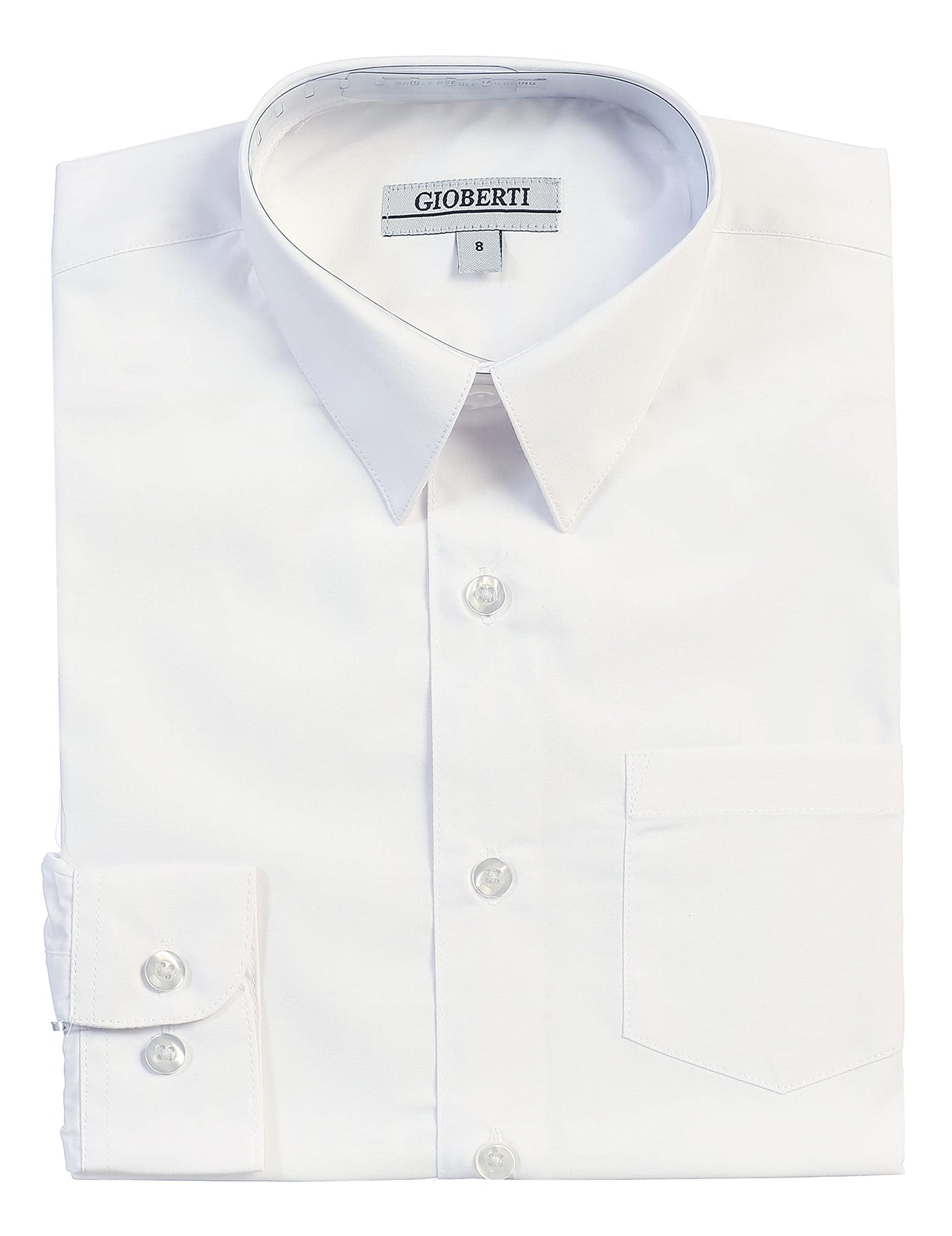 Gioberti Boys Long Sleeve Solid Dress Shirt, White, 6