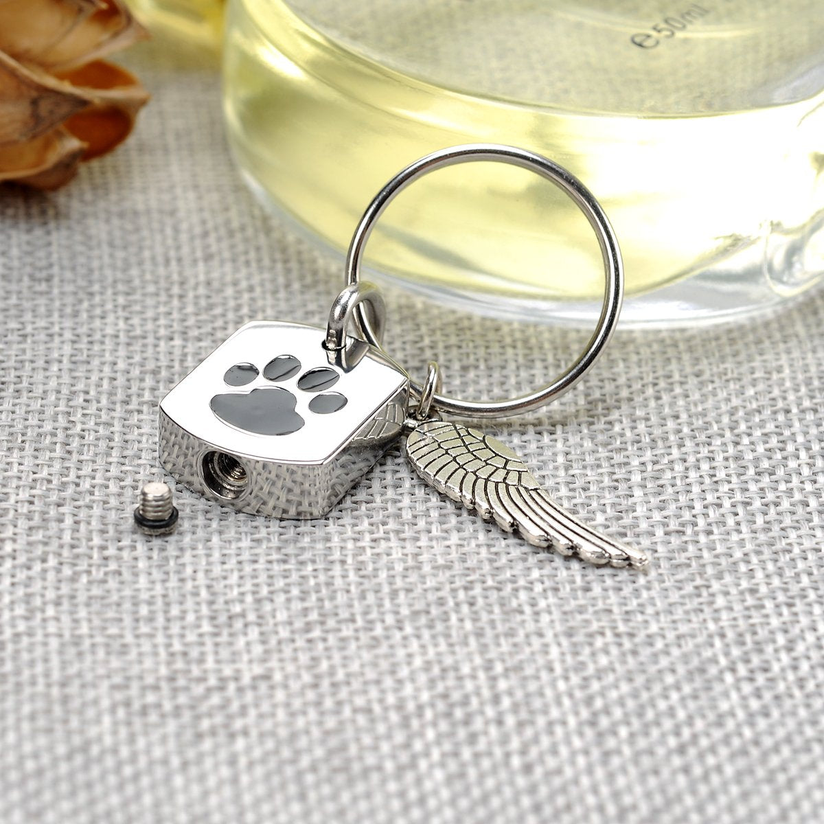 Giono Cremation Charm Jewelry Angel Wing Charms Dog/Cat Paw Urn Pendant Memorial Keychain For Ashes Keepsake Urns Ash Jewelry For Pet