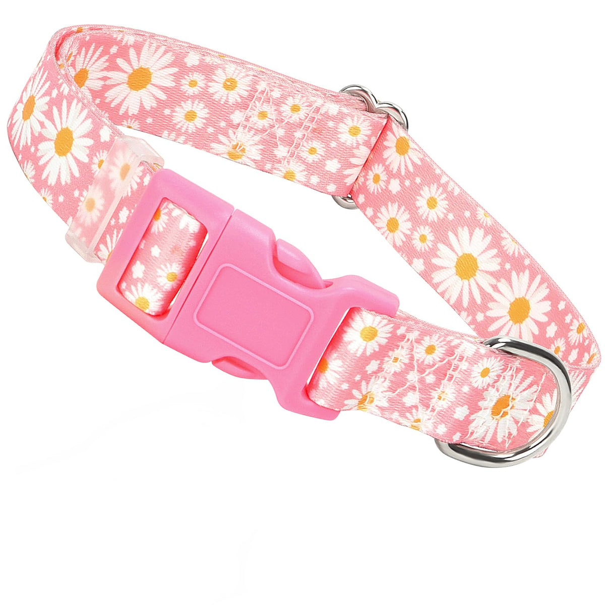 Girl Dog Collars For Medium Dogs,Female Dog Collars With Pink Daisy Flowers, Adjustable Comfy Soft Pet Collar With Safety Buckle