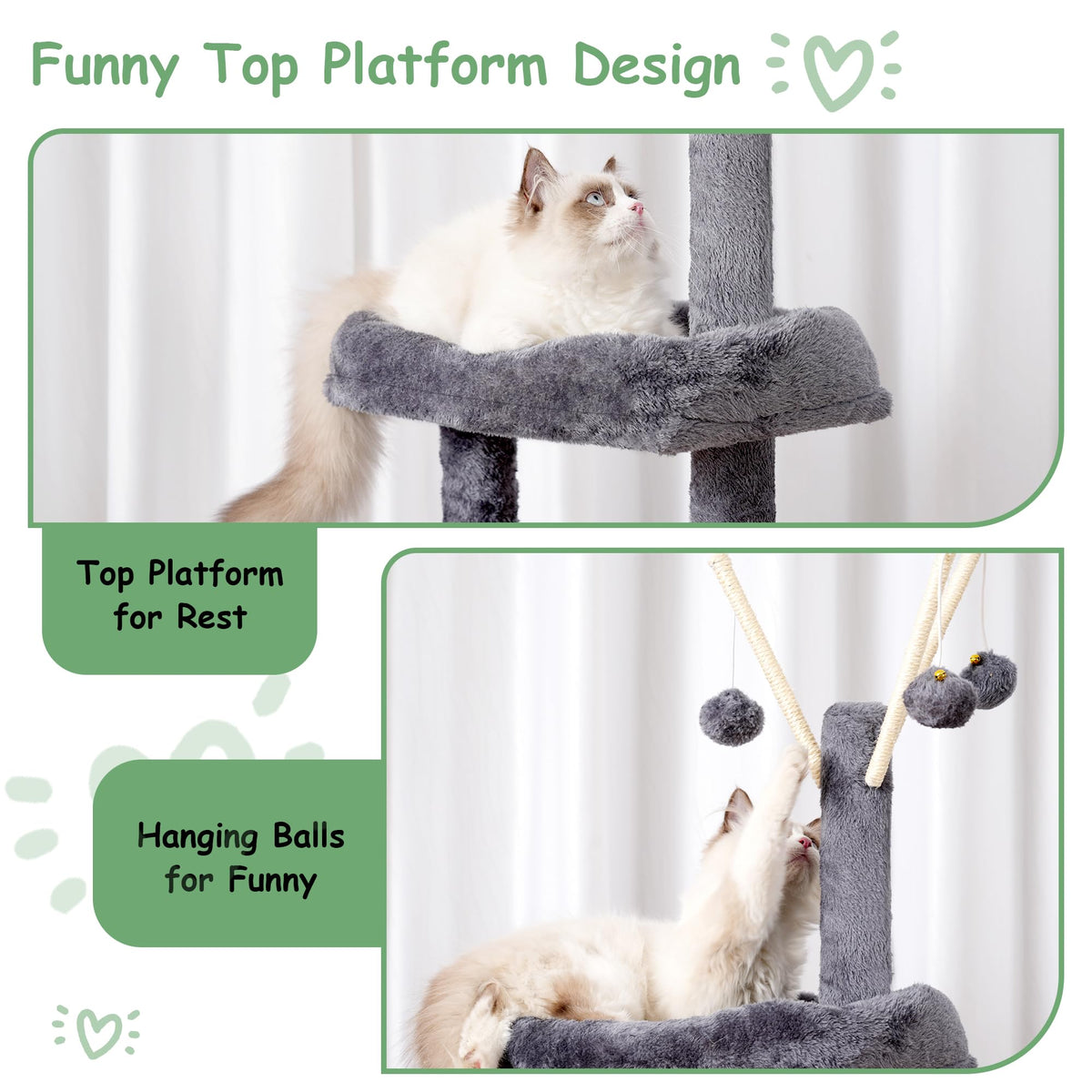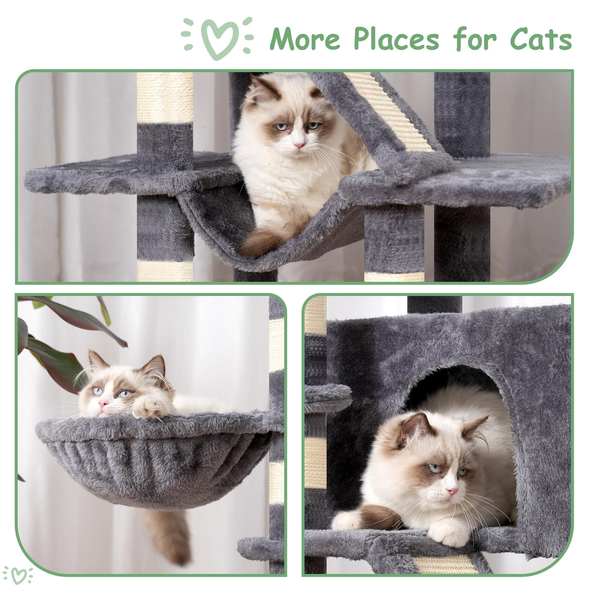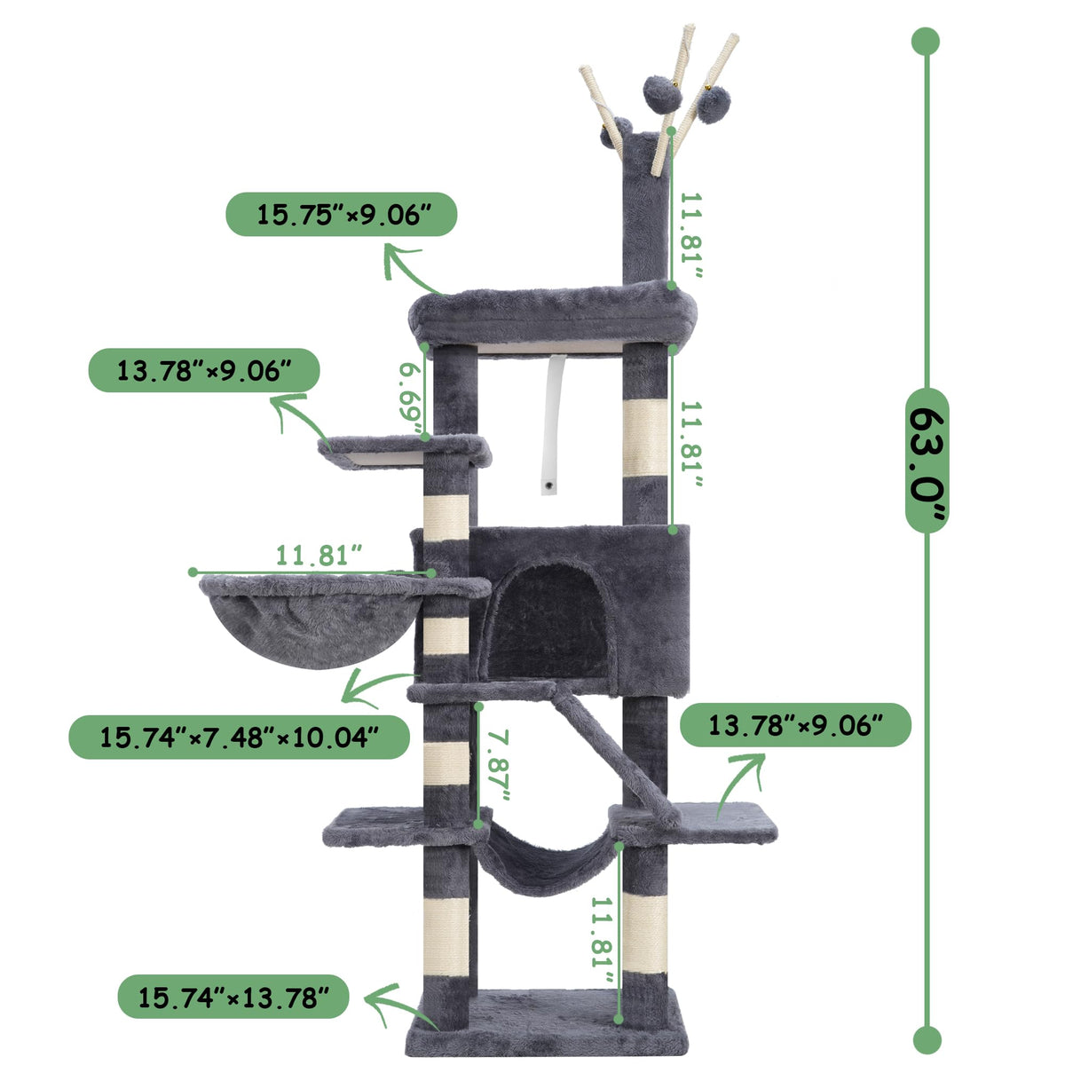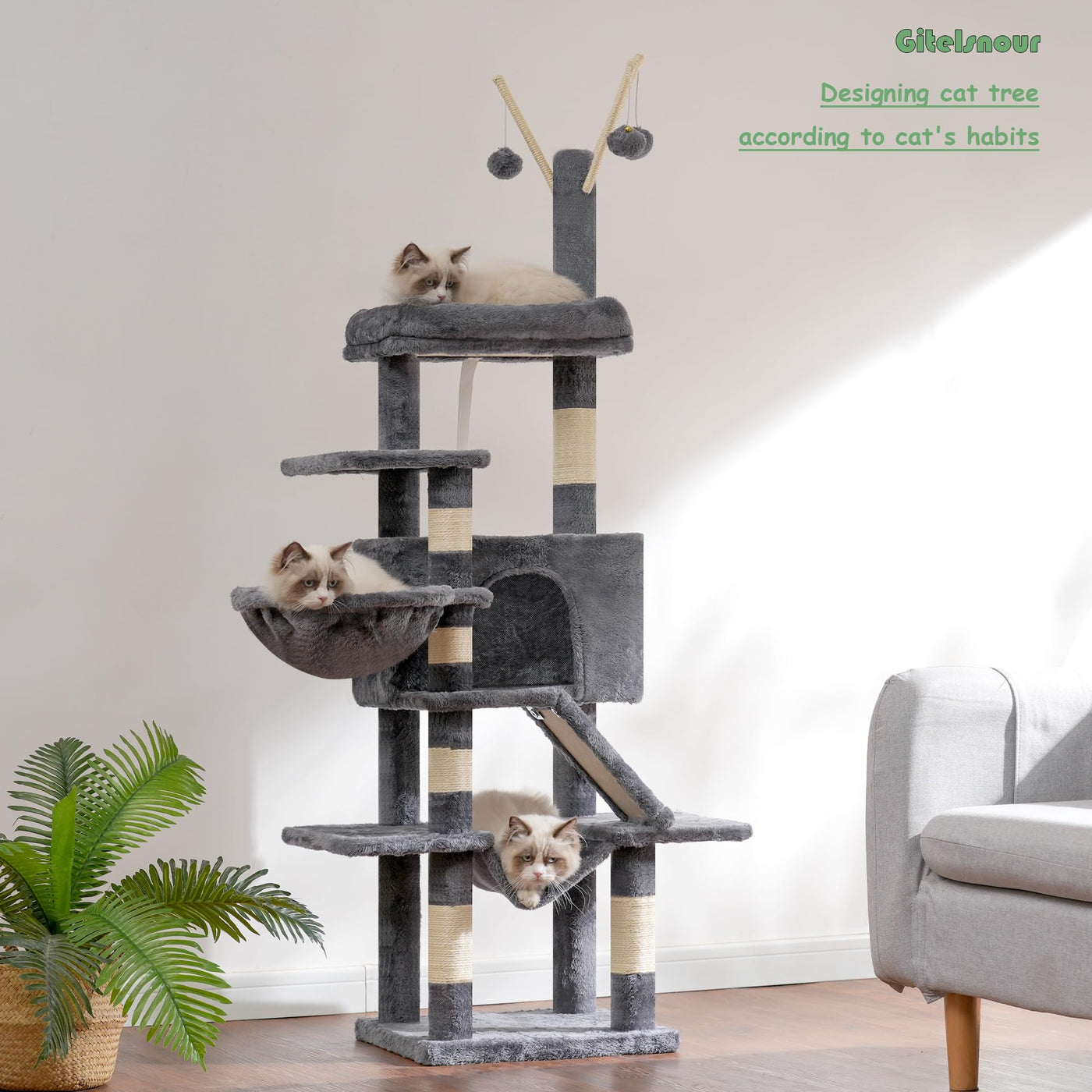 Gitelsnour Cat Tree, 63 Inch Multi-Level Cat Tower For Indoor Cats, Cat Condo With Cat Scratching Post And Board, Cat Hammock, S