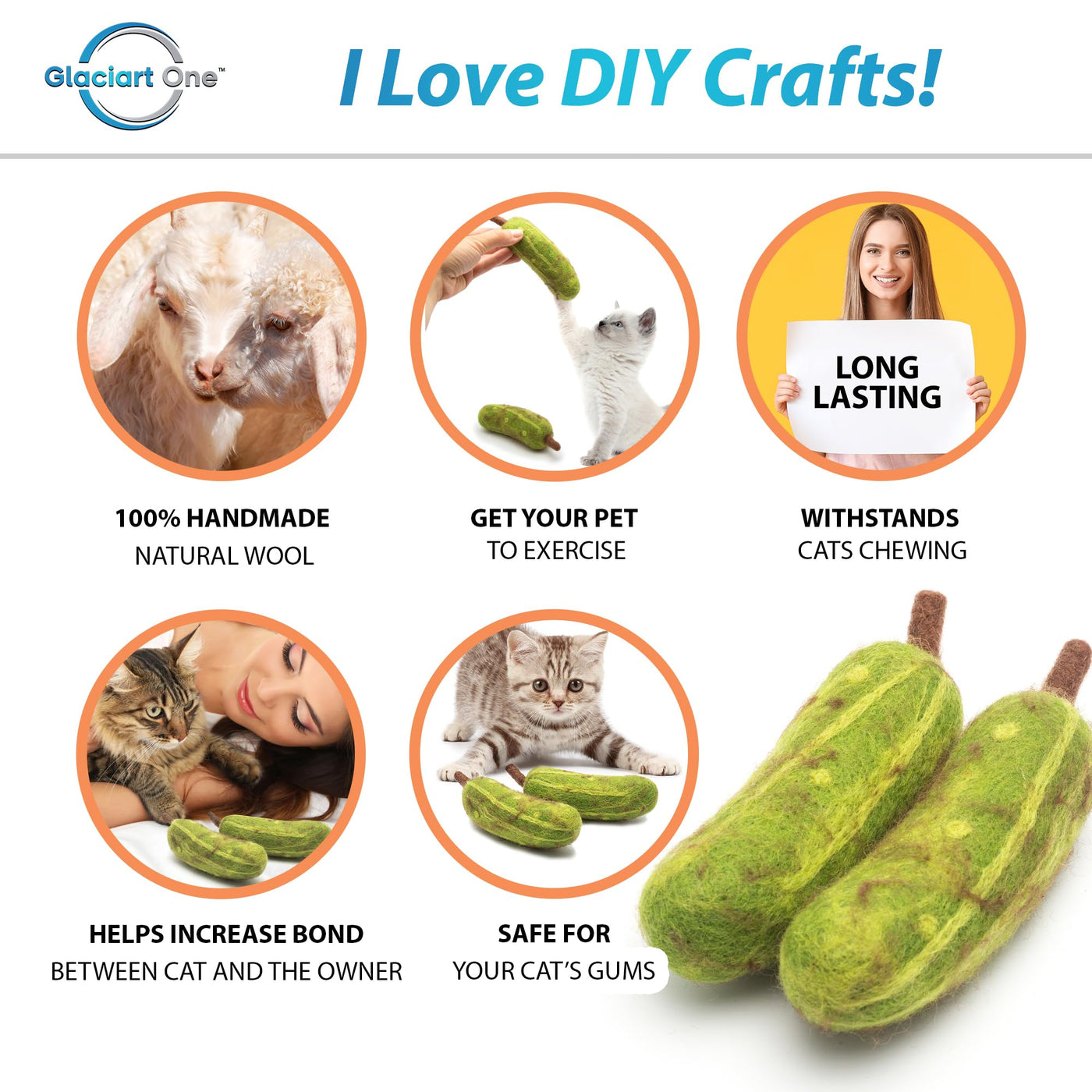 Are Your Cats Getting Enough Exercise And Mental Stimulation?Have You Ever Left Your Cat Alone For A Few Hours Only To Come Home To A Chewed Up Carpet? Or Does Your Cat Regularly Scratch Up Your Sofa? Boredom And Lack Of Exercise Could Be The Reason For Your Pets' Destructive Behavior.Make Playtime Part Of Their Regular Routine! Keep Your Bored Pets Happy And Well Entertained By Giving Them A New Toy.The Glaciart One Wool Felt Pickles For Cats Gives Hours Of Fun And Much-Needed Exercise.Use These Versatile Toys To Play Or To Keep Your Cats Entertained With Hours Of Scratching And Rolling. It Comes In Natural Wool Felt Material, So It Is Very Attractive To Your Fur Babies.While Other Felt Toys Are Tinted With Artificial Dyes And Blended With Synthetic Fabrics, These Pickle Toys Are Made Only Of Natural New Zealand Wool-No Foam Or Plastic Fillers. These Kitty Toys Are Firm Yet Plush, So Your Pets Won'T Feel Any Pain When They Bite Into One. At 4.3 Long Pickles Are Just The Right Size For Your Pets To Play With Without Choking. The Smooth Texture Won'T Hurt Your Hands When You Play With The Toy.More Reasons To Add Wool Felt Pickles In Your Pet Care Kit:- Hand Felted In Nepal- 4.3 (11Cm) Long- Wonderful Gift For Pet Lovers- Can Be Used As Decorative Ornamentspamper Your Pets With Some Bouncy, Rolling Fun. Add The Glaciart One Wool Felt Pickles For Cats & Pets To Your Cart Today.Warning! This Toy Is For Cats Only. Dog Owners- Make Sure The Toy Is Large Enough To Not Be Swallowed By Your Dog. Always Supervise Your Pet During Play To Prevent Accidental Swallowing.
