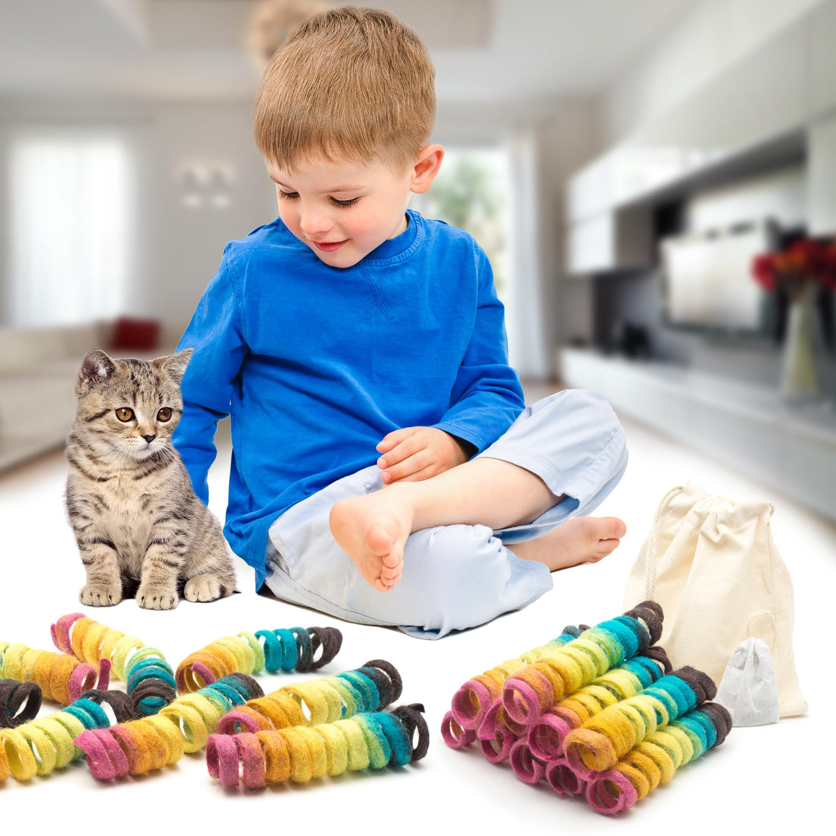 Are Your Cats Getting Enough Exercise And Mental Stimulation?Have You Ever Left Your Cat Alone For A Few Hours Only To Come Home To A Chewed Up Carpet? Or Does Your Cat Regularly Scratch Up Your Sofa? Boredom And Lack Of Exercise Could Be The Reason For Your Pets' Destructive Behavior.Make Playtime Part Of Their Regular Routine! Keep Your Bored Pets Happy And Well Entertained By Giving Them A New Toy.The Glaciart One Wool Felt Spring For Cats Gives Hours Of Fun And Much-Needed Exercise.Use These Versatile Springs To Play Or To Keep Your Cats Entertained With Hours Of Scratching And Rolling. It Comes In Vivid Rainbow Colorful Felt Material So It Is Very Attractive To Your Fur Babies.While Other Felt Balls Are Tinted With Artificial Dyes And Blended With Synthetic Fabrics, These Springs Are Made Only Of Natural New Zealand Wool-No Foam Or Plastic Fillers. The Springs Are Firm Yet Plush, So Your Pets Won'T Feel Any Pain When They Bite Into One. At 2.4 When Folded And 15 When Stretched, The Springs Are Just The Right Size For Your Pets To Play With Without Choking. The Smooth Texture Won'T Hurt Your Hands When You Play With The Toy.More Reasons To Add Wool Felt Springs In Your Pet Care Kit:- Hand Felted In Nepal- 15 Long When Straighten- Wonderful Gift For Pet Lovers- Can Be Used As Decorative Ornamentspamper Your Pets With Some Bouncy, Rolling Fun. Add The Glaciart One Wool Felt Springs For Cats & Pets To Your Cart Today.Warning!This Toy Is For Cats Only. Dog Owners- Make Sure The Toy Is Large Enough To Not Be Swallowed By Your Dog. Always Supervise Your Pet During Play To Prevent Accidental Swallowing.
