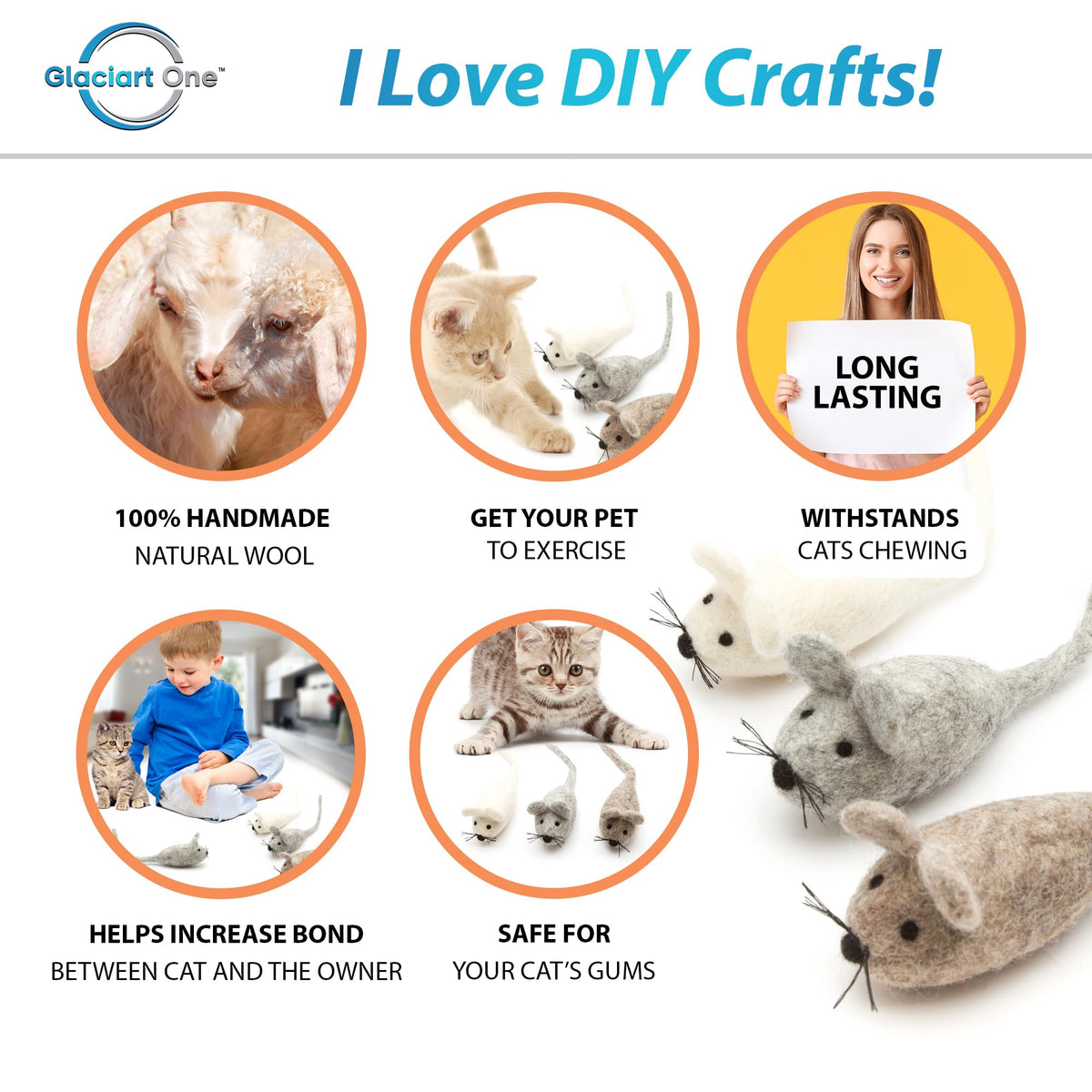 Are Your Cats Getting Enough Exercise And Mental Stimulation?Have You Ever Left Your Cat Alone For A Few Hours Only To Come Home To A Chewed Up Carpet? Or Does Your Cat Regularly Scratch Up Your Sofa? Boredom And Lack Of Exercise Could Be The Reason For Your Pets' Destructive Behavior.Make Playtime Part Of Their Regular Routine! Keep Your Bored Pets Happy And Well Entertained By Giving Them A New Toy.The Glaciart One Wool Felt Mouse For Cats Gives Hours Of Fun And Much-Needed Exercise.Use These Versatile Mouse Toys To Play Or To Keep Your Cats Entertained With Hours Of Scratching And Rolling. It Comes In Natural White, Grey And Brown Wool Felt Material, So It Is Very Attractive To Your Fur Babies.While Other Felt Toys Are Tinted With Artificial Dyes And Blended With Synthetic Fabrics, These Mouse Toys Are Made Only Of Natural New Zealand Wool-No Foam Or Plastic Fillers. These Kitty Toys Are Firm Yet Plush, So Your Pets Won'T Feel Any Pain When They Bite Into One. At 3.5 Body And 5 With Tail, The Mouse Is Just The Right Size For Your Pets To Play With Without Choking. The Smooth Texture Won'T Hurt Your Hands When You Play With The Toy.More Reasons To Add Wool Felt Mouse In Your Pet Care Kit:- Hand Felted In Nepal- 8.5 Long (Body + Tail)- Wonderful Gift For Pet Lovers- Can Be Used As Decorative Ornamentspamper Your Pets With Some Bouncy, Rolling Fun. Add The Glaciart One Wool Felt Mouse For Cats & Pets To Your Cart Today.Warning! This Toy Is For Cats Only. Dog Owners- Make Sure The Toy Is Large Enough To Not Be Swallowed By Your Dog. Always Supervise Your Pet During Play To Prevent Accidental Swallowing.