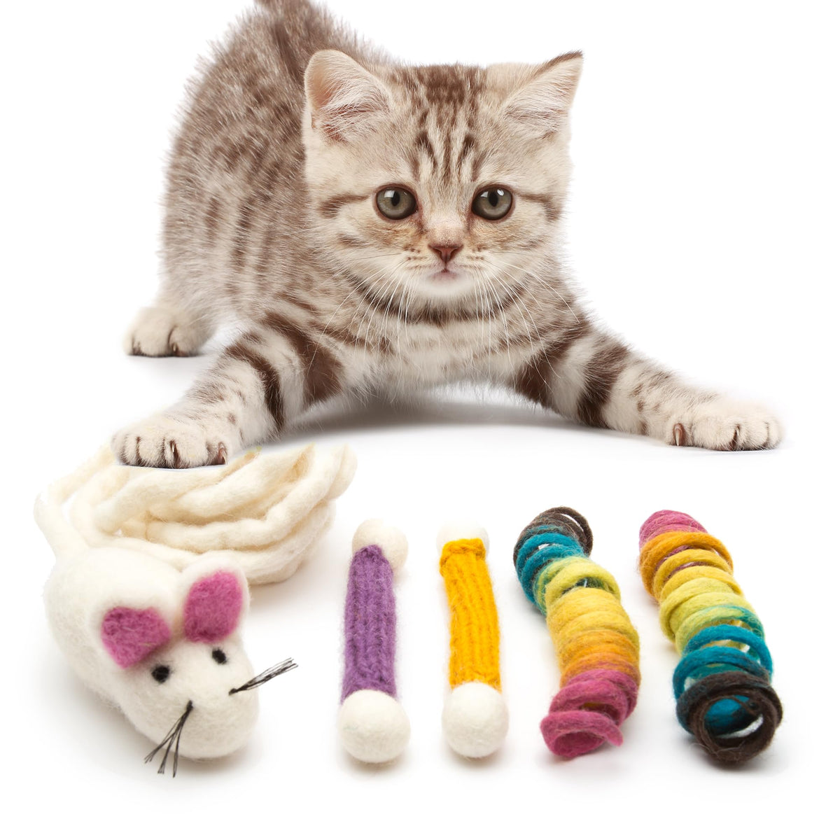 Glaciart One Indoor Catnip Cat Toy Pack - 5Pc | Kitty Toys Include Wool Springs, Swabs & Mouse | For Activity, Exercise & Play |