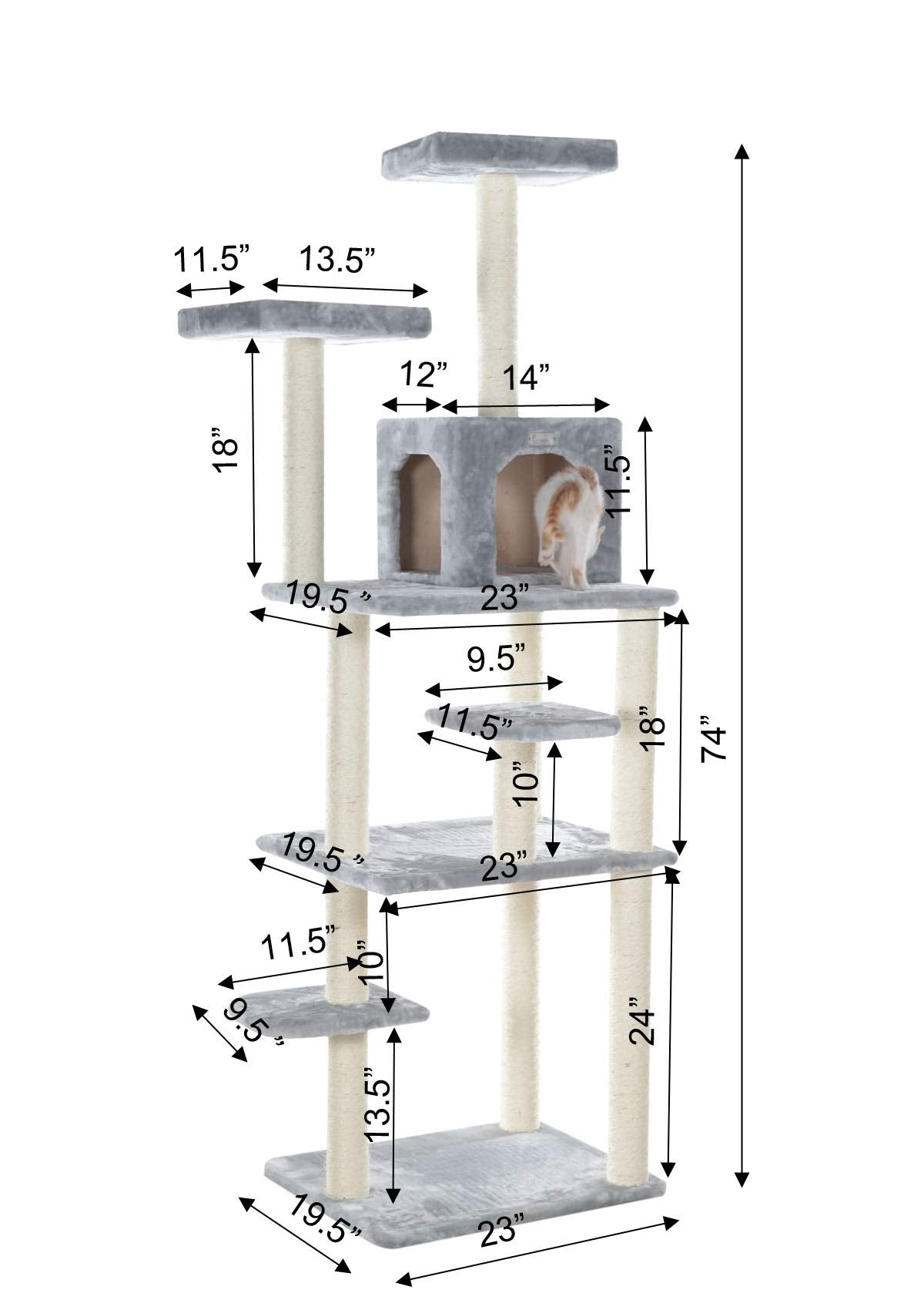 GleePet GP78740822 Cat Tree, 74-Inch, Silver Gray