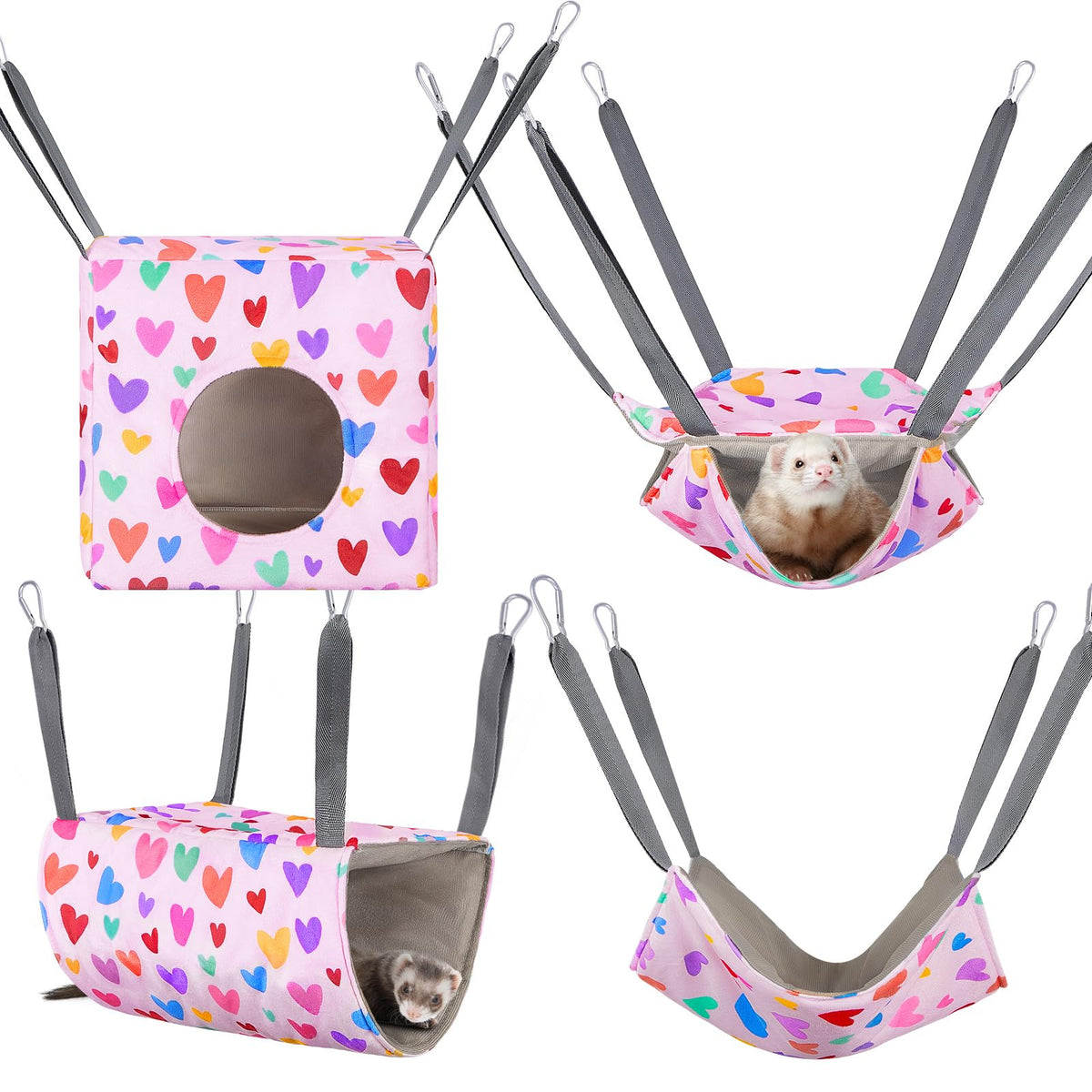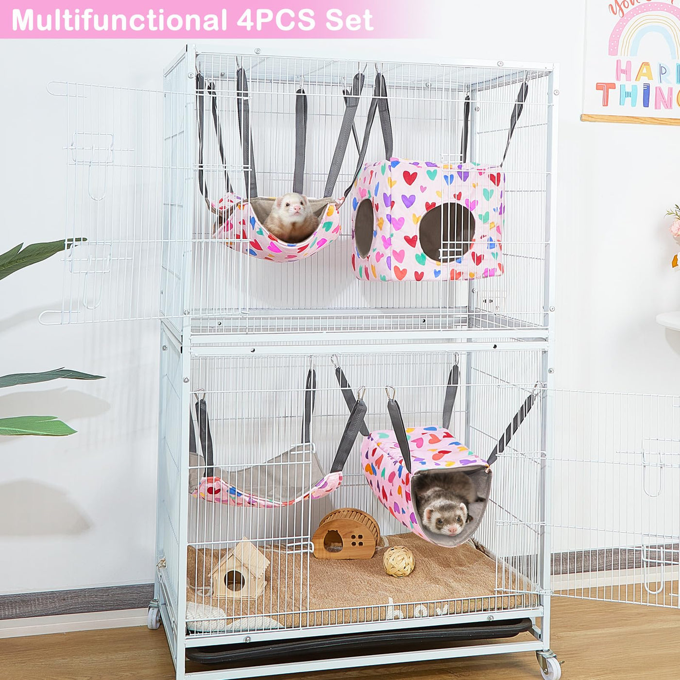 Glittme Ferret Hammock 4 Pack Ferret Cage Accessories Washable Rat Hammock Soft Guinea Pig Hammock For Ferrets, Rat, Sugar Glide