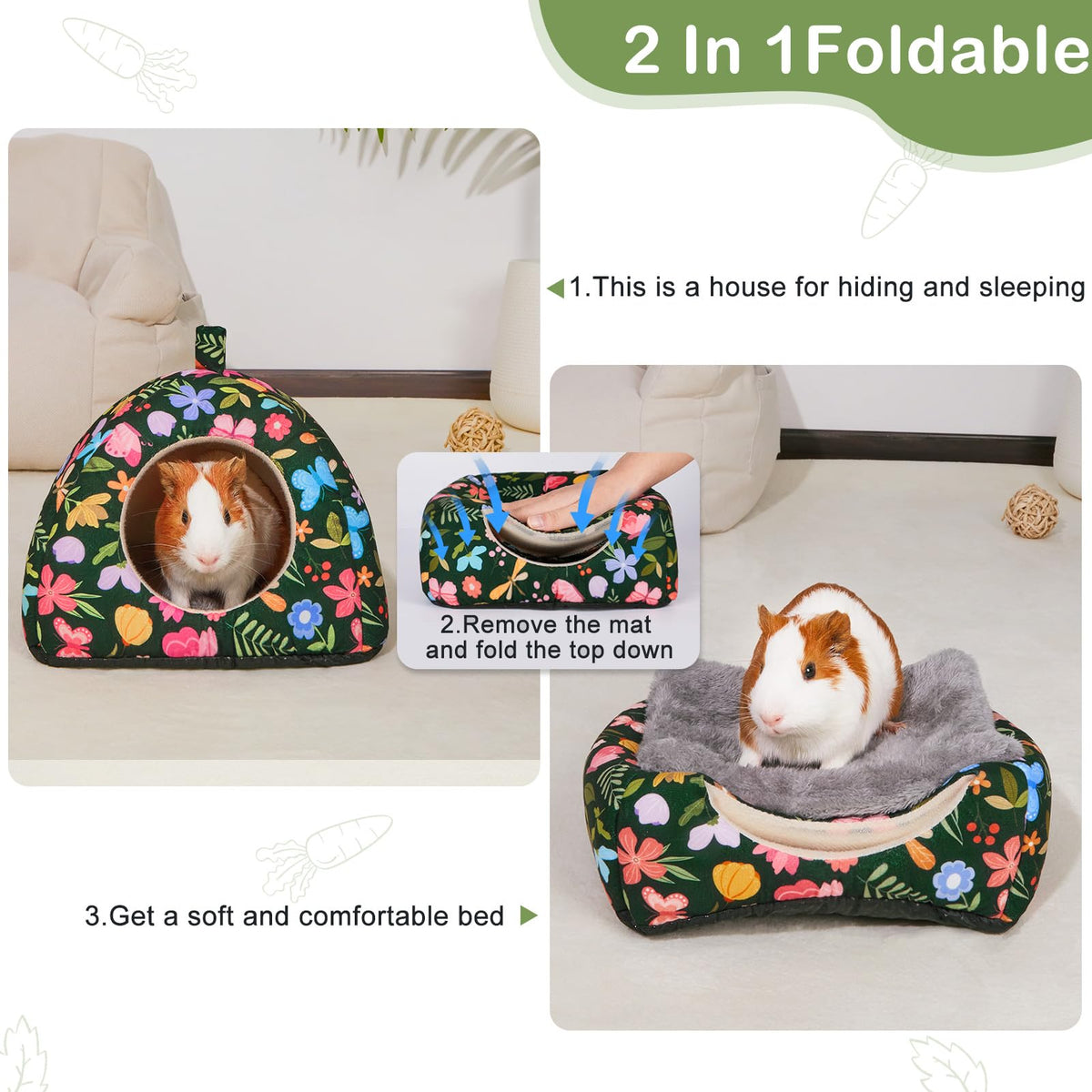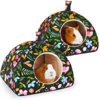 Glittme Guinea Pig Hideout 2Pack Guinea Pig Bed with Soft Pads Washable Guinea Pig House with Non-Slip Bottom Rabbit Hideout for