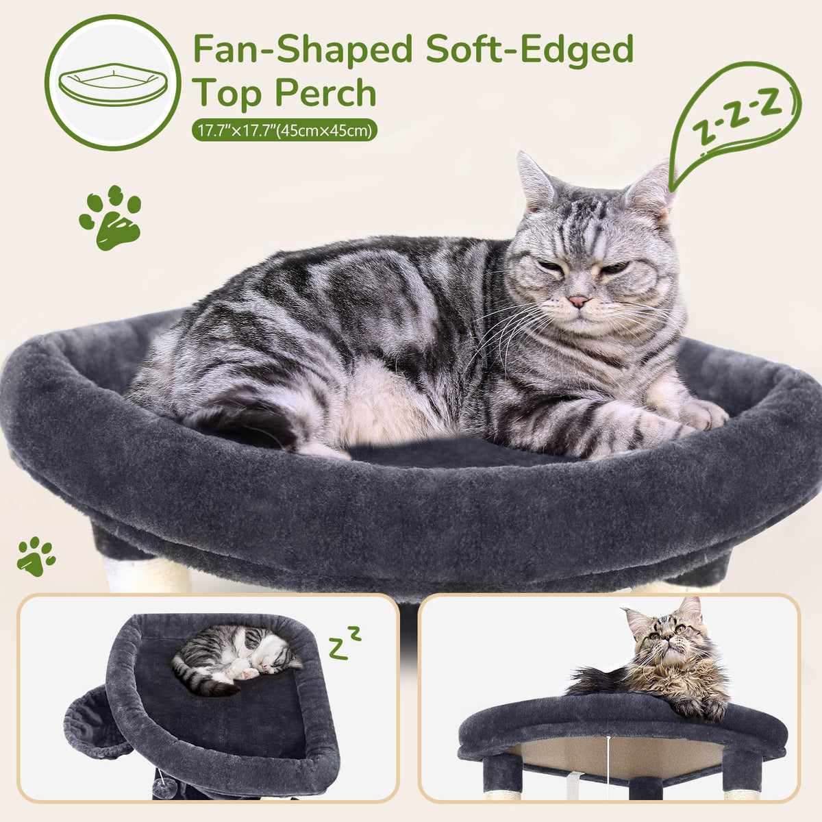 Introducing The Globlazer C51 Corner Cat Tree, A 51-Inch Large Cat Tower From The Curved Series Designed To Accommodate Large Indoor Cats. This Cat Tree Features An Extra-Large Top Perch, One Spacious Cat Condos, Hanging Basket Bed, Hammock, And 5 Scratching Posts. Skillfully Crafted To Fit In Room Corners, This Cat Tree Provides A Safe And Stable Space For Your Feline Companions To Play, Rest, And Explore.Key Features:Extra-Large Top Perch: Offers A Wide And Comfortable Resting Space For Indoor Cats.Two Huge Cat Condos: Provides Ample Room For Stretching, Hiding, And Exploration.Hanging Basket Bed, Hammock: Experience Gentle Swaying And Suspension For Added Comfort.Corner Cat Tree: Designed To Optimize Stability When Placed In Corners, Making It Safe And Secure.Product Dimensions:Size Of Cat Condo: 12.9 Inches X 12.9 Inches X 12.5 Inchestop Cotton Nest Size: 17.7 Inches X 17.7 Inchesbase Plate Size: 17.7 Inches X 17.7 Inchesnet Weight: 28.33 Poundsgross Weight: 30.64 Poundspackage Includes:1 X Cat Tree1 X Assembly Kit1 X Installation Instructions Manual