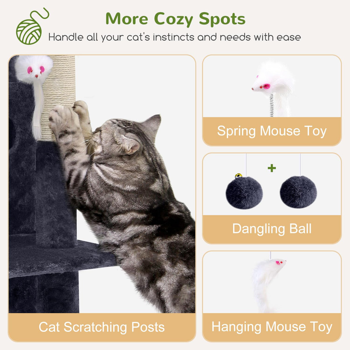 Description:Introducing Our Globlazer Fc50 Adult Cat Tree, A 50-Inch Cat Tree Designed To Provide Indoor Cats With A Cozy And Entertaining Space. This Cat Tree Features Two Large Caves, A Spacious Top Perch, Dangling Toys, And A Scratching Post, Catering To The Play And Relaxation Needs Of Your Feline Friends. Skillfully Crafted To Be Placed In A Corner, This Corner Cat Tree Is Both Safe And Stable, Optimizing Room Space Effectively.Product Dimensions:Size Of Cat Condo: 17.72 Inches X 11.81 Inches X 23.62 Inchestop Cotton Nest Size: 15.75 Inches X 13.78 Inchesbase Plate Size: 23.62 Inches X 15.75 Inchesnet Weight: 24.25 Poundsgross Weight: 22.27 Poundspackage Includes:1 X Cat Tree1 X Assembly Kit1 X Installation Instructions Manual