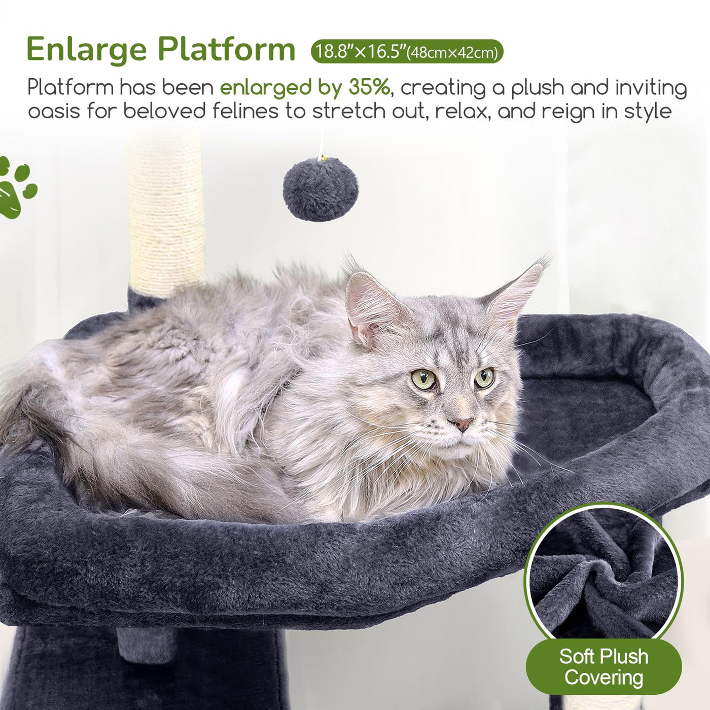 Discover The Ultimate Playground For Your Feline Friends With The Globlazer S65 Extra Large Platform Cat Tree Tower! Designed With Both Pet Safety And Comfort In Mind, This 65-Inch Tall Cat Tower Is A Perfect Blend Of Style And Functionality, Making It An Irresistible Addition To Any Cat-Loving Household. **Why You'Ll Love The Globlazer S65:** - **Rock-Solid Stability:** Say Goodbye To Wobbly Cat Trees! The Globlazer S65 Features A Robust Base And An Anti-Tip Strap, Ensuring A Safe And Stable Environment For Your Cats To Leap And Play. No More Heart-Stopping Moments When Your Cats Are In Action! - **Luxurious Lounging:** With Three Generously Padded Perches, Your Cats Can Pick Their Favorite Spot To Nap Or Keep An Eye On Their Kingdom. Each Level Is Designed To Provide The Utmost Comfort With Plush Cushions, Making Every Perch A Premium Lounging Experience. - **Privacy And Play:** Whether They Crave A Cozy Nook For A Peaceful Retreat Or A Playful Area To Catch Their Toys, This Cat Tower Has It All. The Spacious Condo Offers A Private Escape, While The Hammock Adds A Fun Touch For Relaxation. Plus, The Dangling Toys Are Sure To Keep Your Cats Entertained For Hours. - **Natural Scratching Solutions:** Protect Your Furniture By Providing Your Cats With Their Scratching Paradise. The Six Posts Wrapped In Natural Sisal Are Perfect For Keeping Your Cats' Claws Healthy While Fulfilling Their Instinctual Needs To Scratch. - **Setup In A Snap:** You Dont Need To Be Handy With Tools To Put This Cat Tree Together. We Provide You With An Easy-To-Follow Installation Guide And All The Necessary Tools, So You'Ll Have It Ready For Your Furry Friends In No Time. Transform Your Home Into A Luxurious Cat Haven With The Globlazer S65 Cat Tree Tower. It'S Not Just A Piece Of Cat Furniture; It'S A Commitment To Your Cats' Happiness And Well-Being. Give Your Cats The Gift Of Fun And Comfort. They'Ll Love You Even More For It!