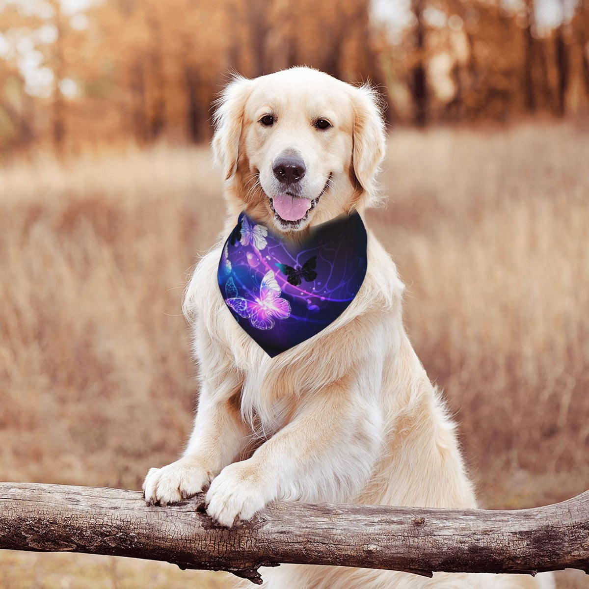 Glowing Night Butterflies Dog Bandana Scarf Triangle Bibs Pet Accessories Cat Kerchief White25 One Size