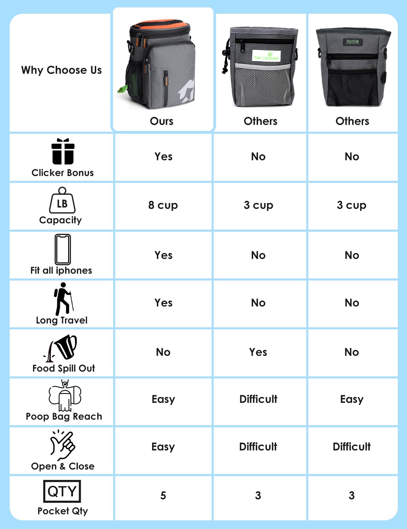 Gobeigo Dog Training Treat Pouch, Pet Treat Bag Holder with Zipper Split Top, Built-in Poop Bag Dispenser, Dog Fanny Pack for Pu