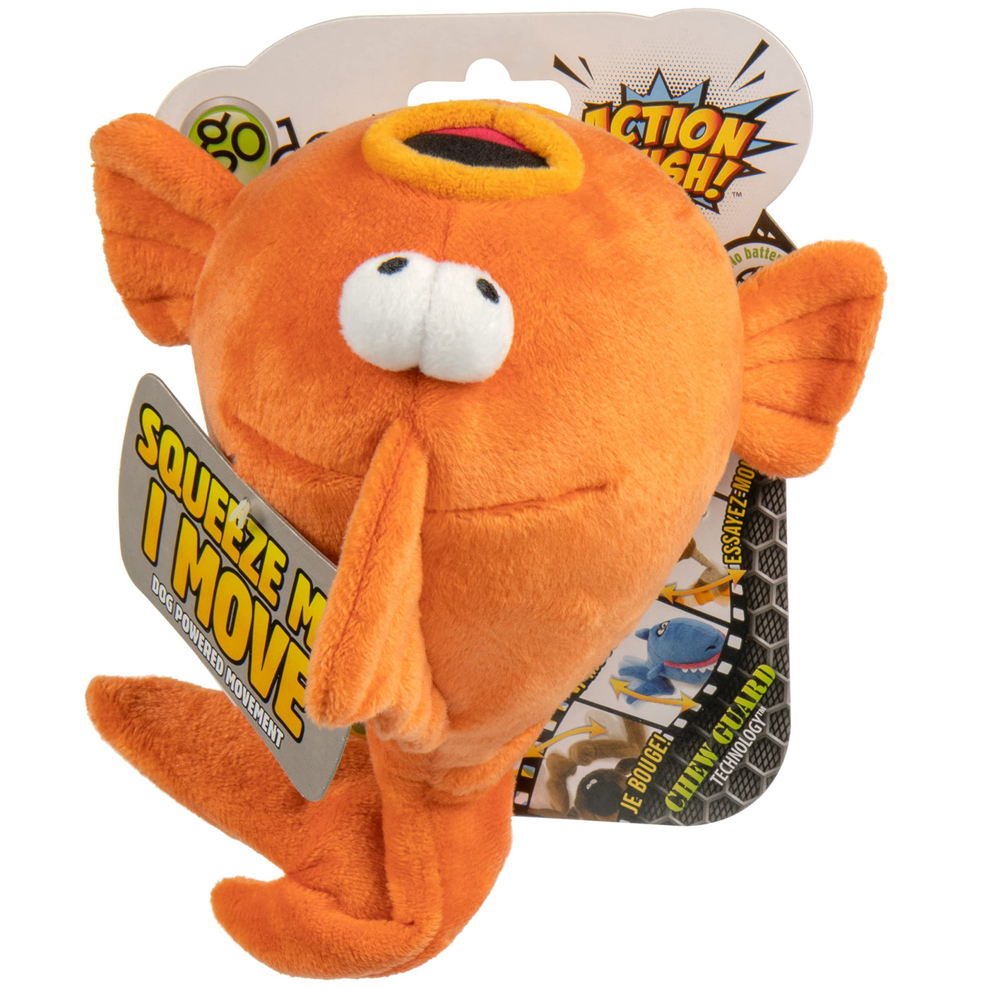 Godog Action Plush Goldfish Animated Squeaky Dog Toy, Chew Guard Technology - Orange, One Size