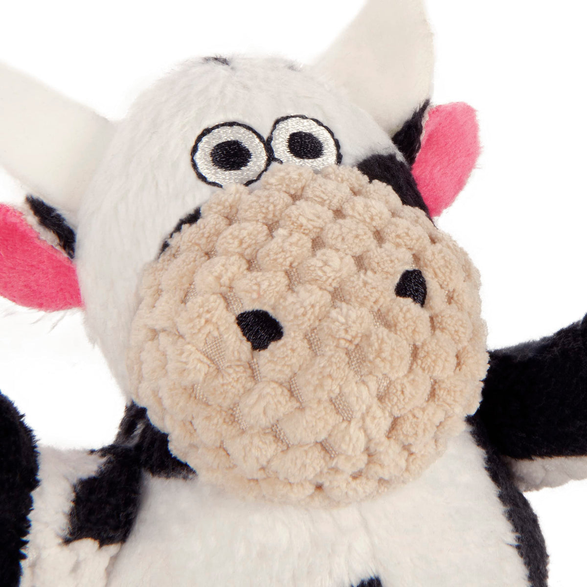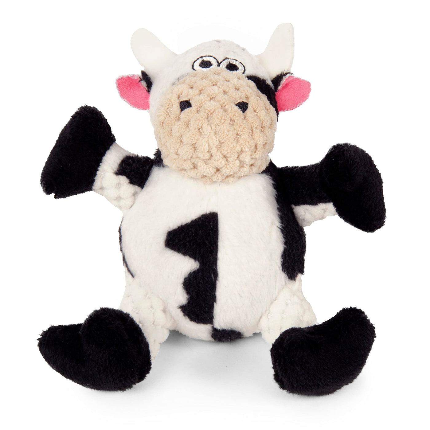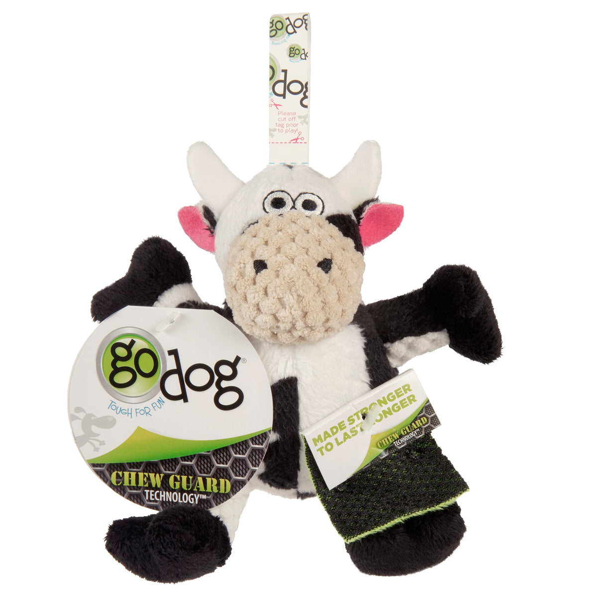 Godog Checkers Just For Me Sitting Cow Squeaky Plush Dog Toy, Chew Guard Technology - White, Mini