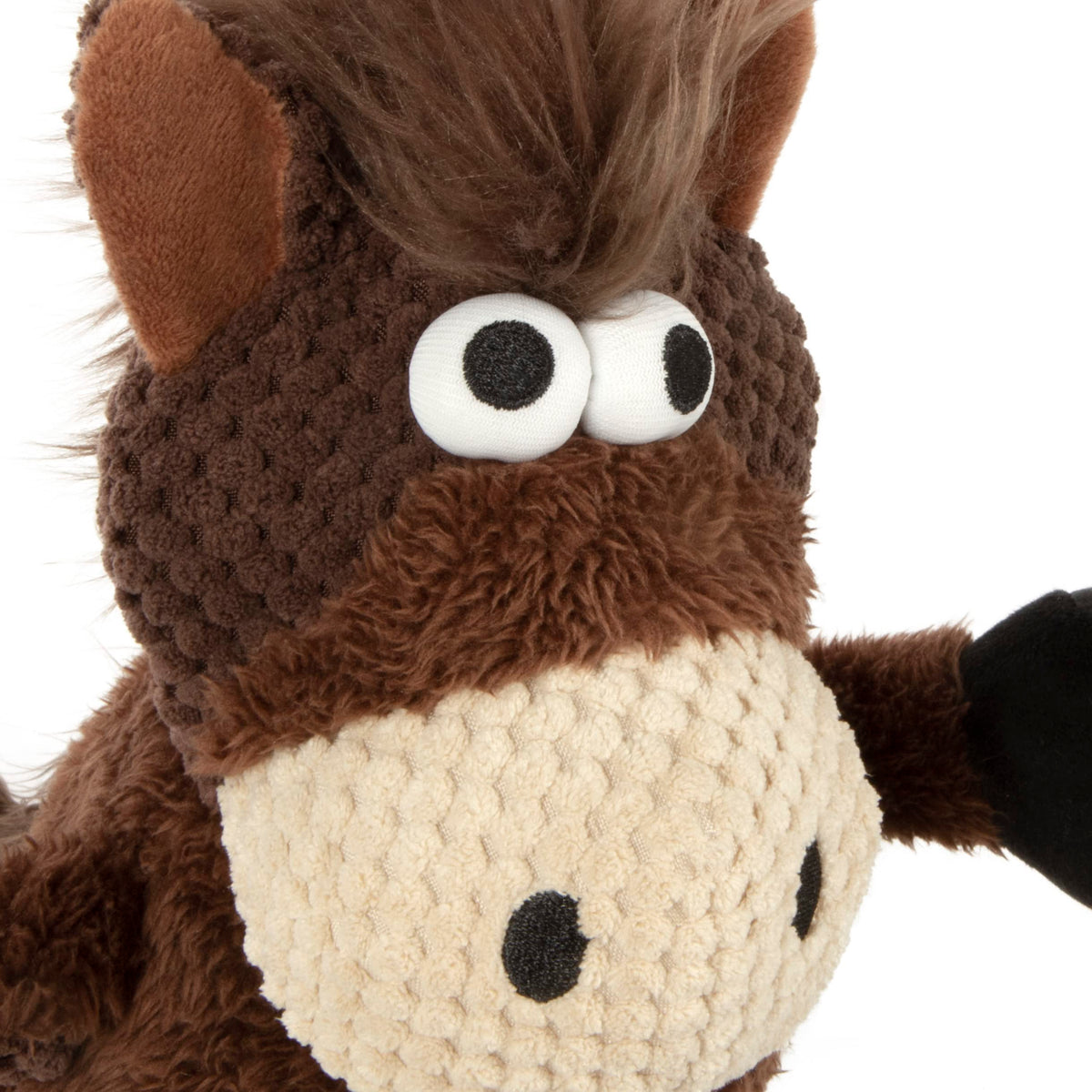 Godog Checkers Skinny Horse Squeaky Plush Dog Toy, Chew Guard Technology - Brown, Large