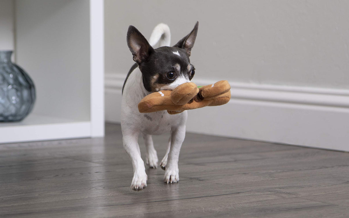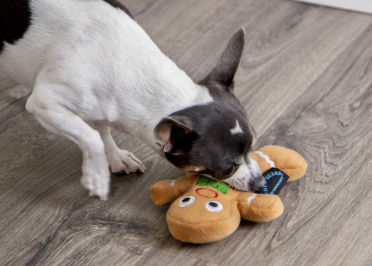 Q: Does the toy have a squeaker, and how does it benefit my dog?A: Yes, the goDog Gingerbread Man toy has a built-in squeaker that entices and excites dogs during play. The auditory feedback stimulates their hunting instincts and keeps their interest, encouraging longer playtime.