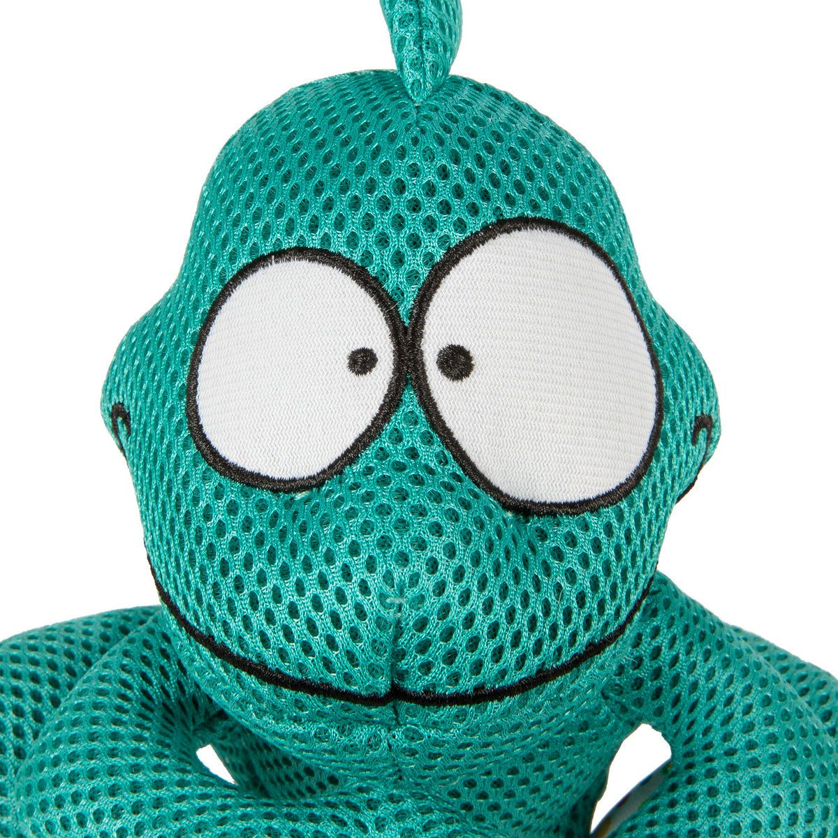 Godog Double Chew Guard Mesh Amphibianz Chameleon Squeaky Dog Toy - Teal, Large