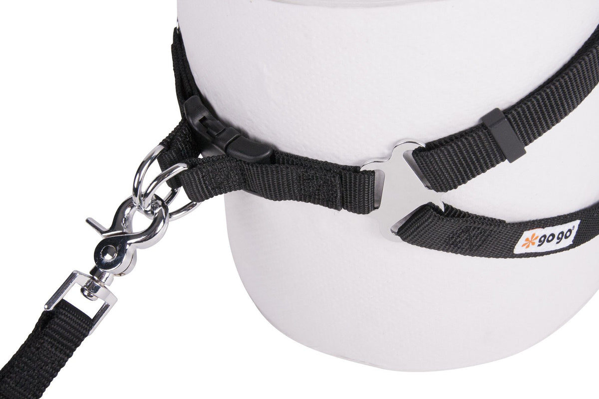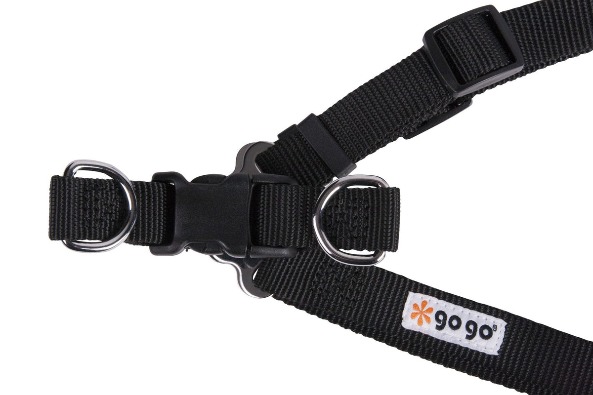 GoGo Comfy Nylon Harnesses are simple to adjust and since they are a step-in harness, they are quick and easy to get on and off your dog. All of the straps are adjustable, including the center strap down the chest, so GoGo Harnesses can be customized to fit any dog. Each harness features two D-rings, one on either side of the heavy plastic snap-lock buckle, giving you steady control over even strong pullers. We've added even more stability to each harness by using a unique piece of hardware with a separate slit for each strap, instead of the standard O-ring. This limits the movement of the straps, which keeps your dog more comfortable and keeps the harness steady and secure. With a variety of colors and sizes to choose from, every dog can look fashionable in their GoGo Harness.