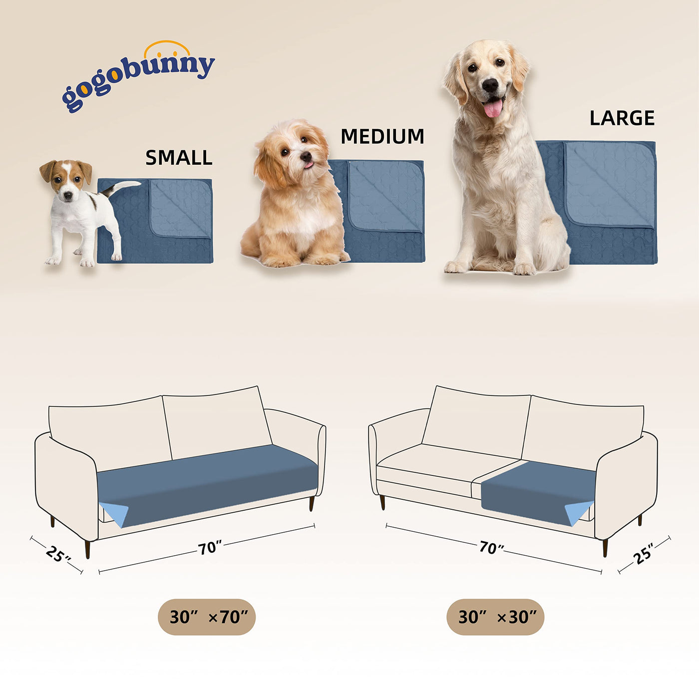 WATERPROOF - gogobunny dog bed cover prevents almost all types of liquids from leaking through. REVERSIBLE - gogobunny dog bed cover is reversible and provides two colors to match your furniture MULTI-PURPOSE -Suitable for all types of furniture,especially for the sofa and bed. It will save your furniture from puppy slobber and bite marks. To protect your bed/sofa from the pet's scratching post. DIMENSIONS - There are 8 different sizes available, please refer to the size picture and choose the suitable size you need.