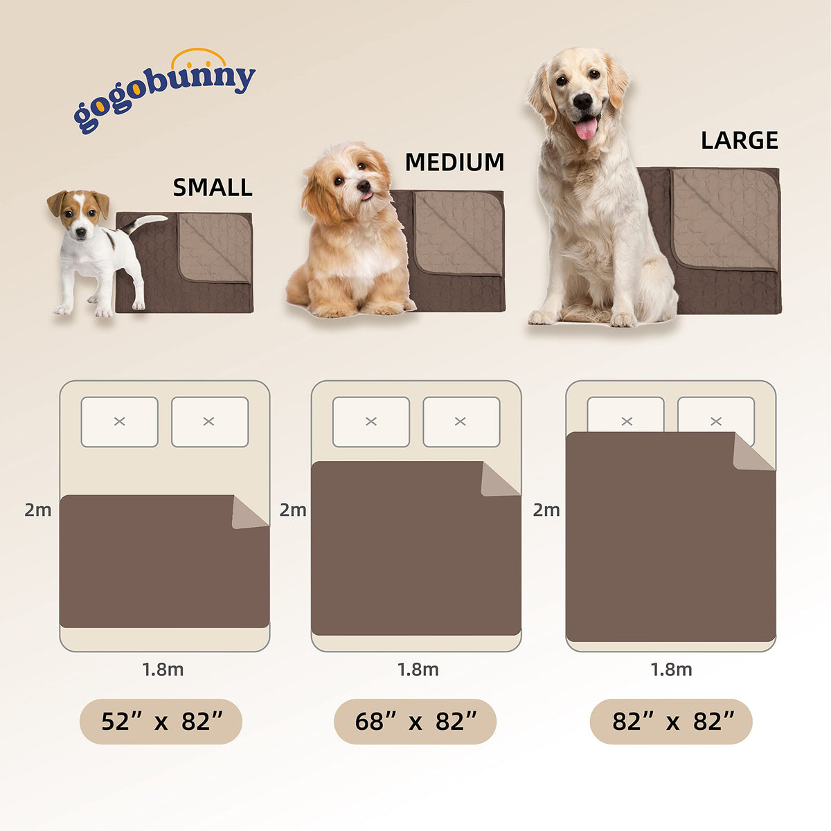 WATERPROOF - gogobunny dog bed cover prevents almost all types of liquids from leaking through. REVERSIBLE - gogobunny dog bed cover is reversible and provides two colors to match your furniture MULTI-PURPOSE -Suitable for all types of furniture,especially for the sofa and bed. It will save your furniture from puppy slobber and bite marks. To protect your bed/sofa from the pet's scratching post. DIMENSIONS - There are 8 different sizes available, please refer to the size picture and choose the suitable size you need.