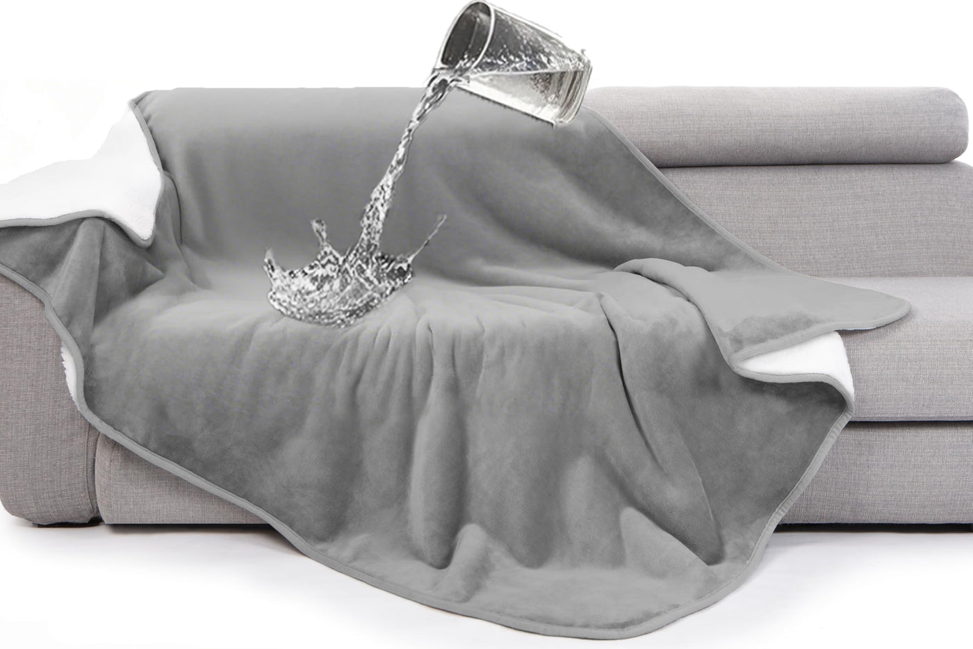 Gogobunny Waterproof Bed Blanket, Reversible Sherpa Fleece Throw Blanket For Dog Puppy Cat, Furniture Cover Protects Bed Couch S