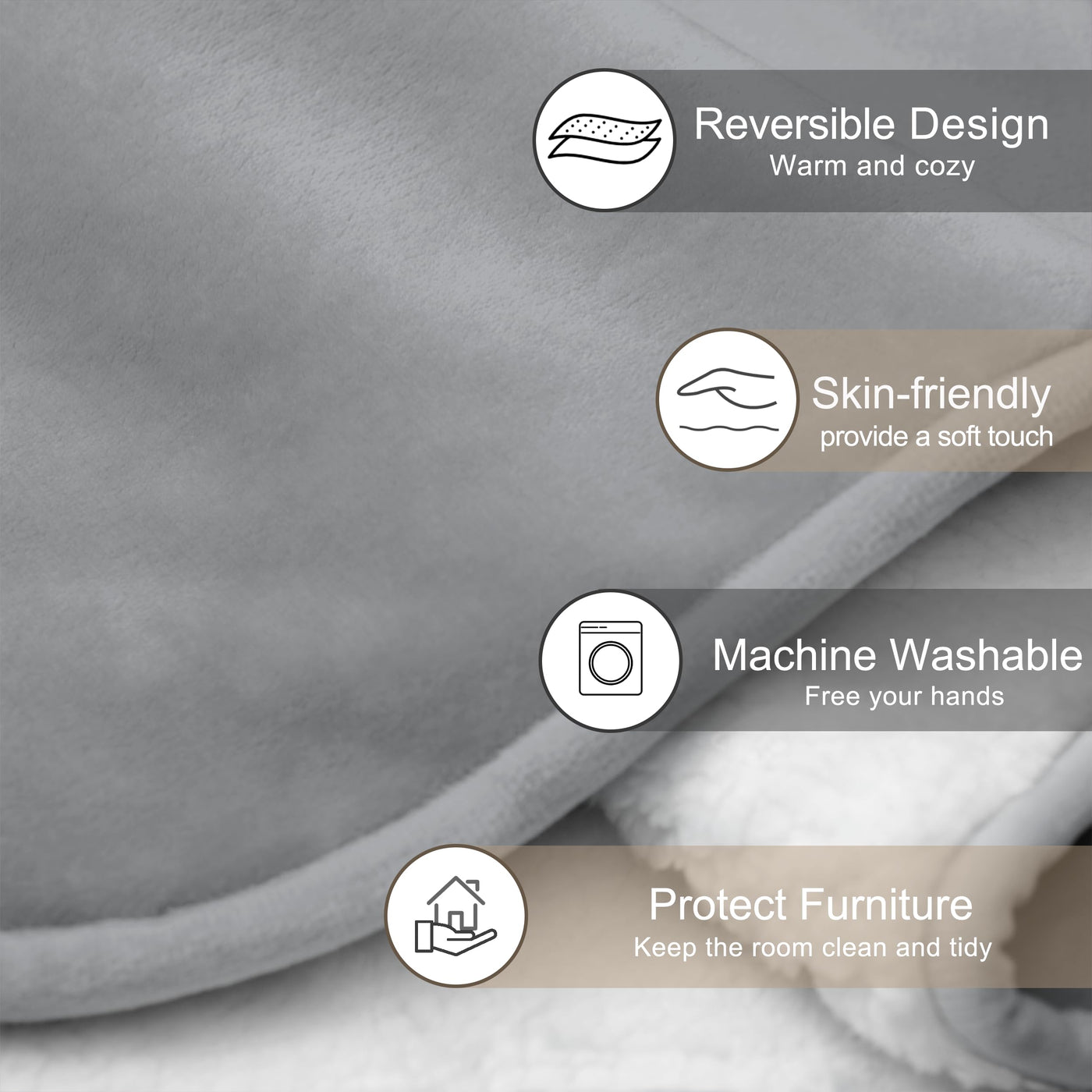 This Protective Grey Pet Blanket Features A Robust Waterproof Barrier That Prevents All Liquid Penetration And Stains, Safeguarding Your Furniture. Crafted With High-Density 260 Gsm Flannel And Sherpa On Each Side, It Provides Exceptional Insulation And Comfort, Though Sizes May Vary Slightly Due To Hand-Cutting. Versatile Enough For Beds, Couches, Floors, And Car Seats, It Successfully Protects Against Pet Hair, Scratches, And Spills. Its Dual-Sided Design Combines Smooth Flannel With Cozy Sherpa Fleece To Create A Soothing, Warm Environment That Helps Pets Feel Secure. Maintenance Is Effortless-Simply Machine Wash In Cold Water And Tumble Dry On Low Heat.
