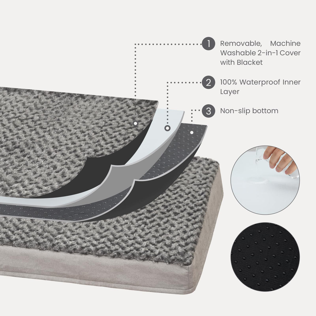 Gohoo Pet Orthopedic Memory Foam Bed For Large Dogs, Waterproof Cooling Pet Mats For Crate With Removable Washable Cover,Ideal F